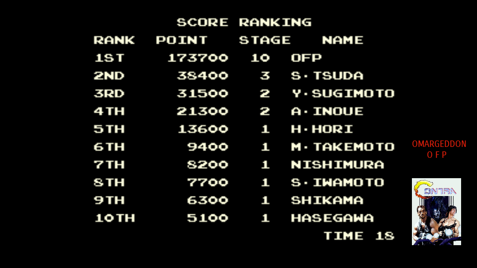 Play with default settings unless otherwise specified. If the ROM set is not mentioned, play the parent ROM. No use of trainers, cheats, saved game files, emulator save states or other emulator advantages. No use of code modifications that give the player an advantage over other players. 1 player only. No continues. In-game/internal autofire is only allowed if a game has it (enabled through hard or soft DIPs). External/MAME/cheat-based autofire is not allowed. It is discouraged and may lead to voters not accepting your score to - excessively point farm - use glitches or other game exploits You can use any emulator you want (Retropie, rain, neo geo, Coinops, Antstream, handhelds,...). If specific emulators or versions are restricted, it will be mentioned in the Specific rules. For Top 3 we encourage (but NOT mandatory) to provide: a) A full video with DIP Switches to be shown in the video (at the start or at the end of your performance). If DIP Switches are not available, Service Menu should be used instead (at the start of your performance). If no difficulty settings is available on your game, you still have to show either DIP switches or service mode showing this (if not mentioned in the specific rules). OR b) An INP file. Please state your MAME version in the comments. And add an URL where the voter can download your .inp. (We currently have no way to store those files on the server, but it is on the roadmap). For INPs: o We encourage to also show the DIPs during your video play. o Delete NVRAM before recording/viewing. Many arcade games that MAME emulates save some information (like high scores) in non-volatile ram (NVRAM), which by default MAME saves in the nvram subfolder. For some games (not all) the RNG is affected by NVRAM, so an .inp file recorded with non-empty nvram won't replay correctly on anyone else's system. o To record INP file, you require Wolfmame: You can download it here : https://github.com/mahlemiut/wolfmame/releases (or on MARP). o Record one run gameplay when using INP. |