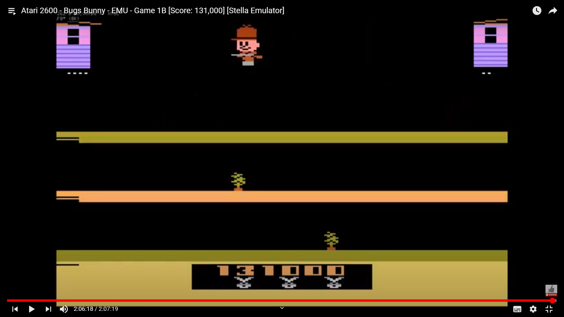 Game 1: β One player β Standard difficulty β Untimed version πThere are two ROM versions of this title: 1οΈβ£ Timed Version β Countdown timer to the left of the score β Bonus awarded for time left, if any, after each hole entered. β Elmer's House not present, and Bugs cannot steal ammo. π Rollover: 10,000 2οΈβ£ Untimed Version β No Countdown timer β Bonus awarded after entering holes is static β Elmer's House is present, and Bugs can steal ammo. π Rollover: 1,000,000 Left difficulty switch setting must remain in the position indicated by the leaderboard category. A/Expert: Small rabbit holes B/Novice: Large rabbit holes Right difficulty switch setting must remain in the position indicated by the leaderboard category*: A/Expert: Slow Elmer* B/Novice: Fast Elmer * Easier setting A 4.16.22 |