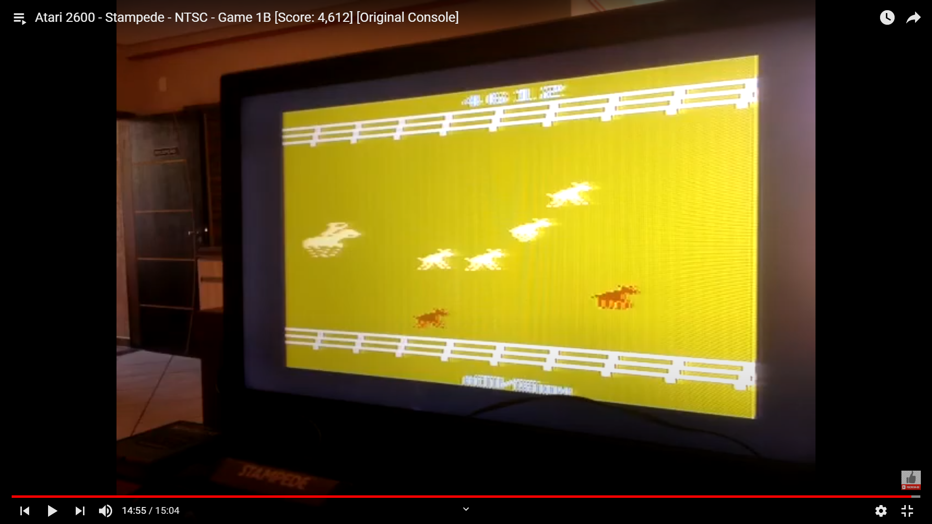 ⚙️ Game 1 ∙ Sidekick ∙ One player ∙ Dogies starting speed: Slow ∙ Dogies run straight: Yes ∙ Set dogie pattern: Yes ⏪ Left difficulty switch setting must remain in the position indicated by the leaderboard category: 🅰 Short lasso 🅱 Long lasso ⏩ Right difficulty switch setting has no effect in this title, and can therefore be in any position at any time. 🔄 Rollover: 10,000 ✒️ Bob Whitehead ©️ Activision 🗓 1981 F 10.19.24 |