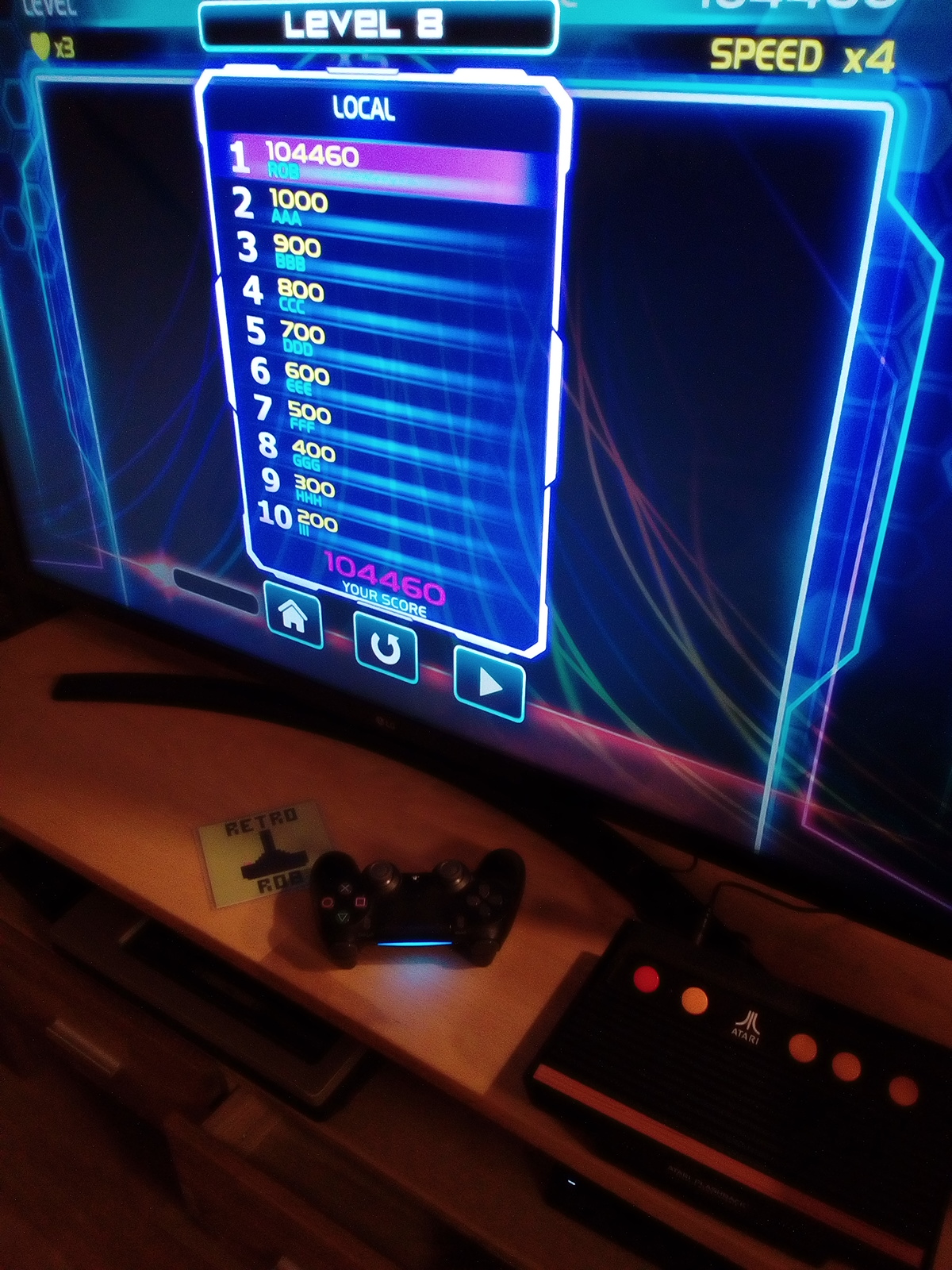 Hardware checked, game checked, Level 08 checked, gameplay checked, score checked.