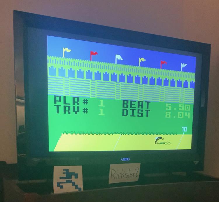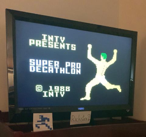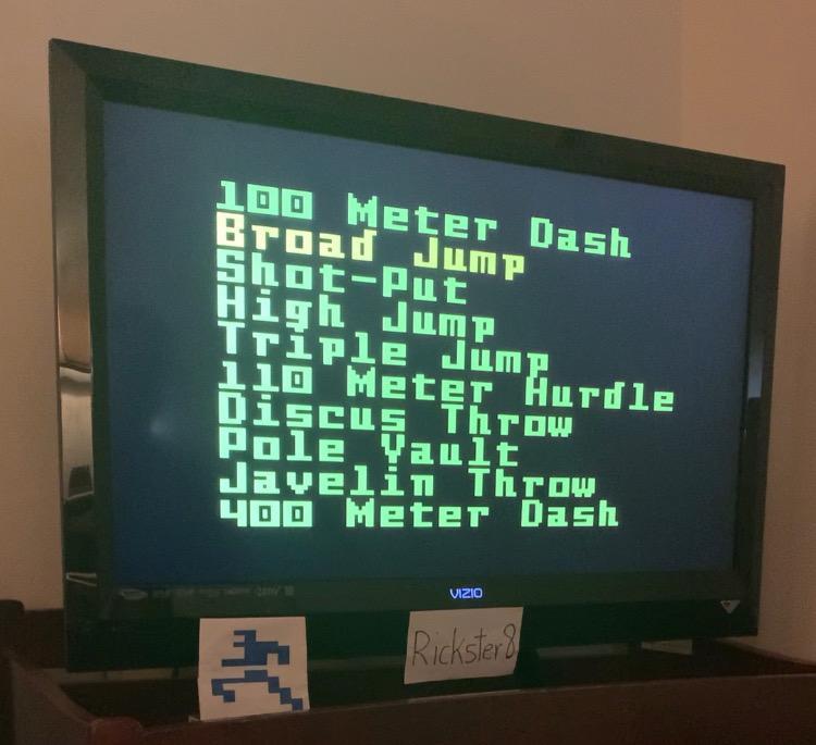 This is my submission for Super Pro Decathlon - Broad Jump - Amateur Level. My best jump was 8.04 meters. Button '1' for Amateur Level was pressed. There are numerous attempts on this video, but for this submission the best scoring run starts at the 5:08 mark. Final jump of 8.04 meters is shown at the 5:21 mark. After all the attempts were finished I showed my Emulated Intellivision, the power was on. At the very end of the video I reset the system and it showed Super Pro Decathlon as the current game. Thx