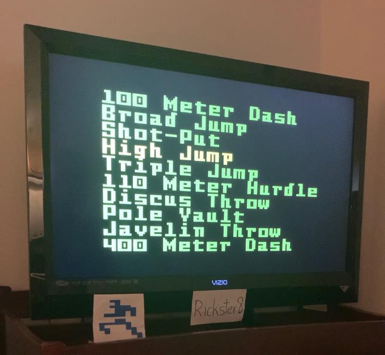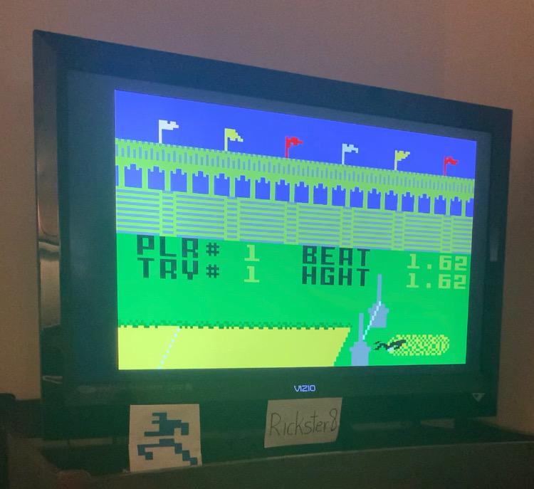 This is my submission for Super Pro Decathlon - High Jump - Amateur Level. My best jump was 1.62 meters. Button '1' for Amateur Level was pressed. There are many attempts on this video, but for this submission the best scoring run starts at the 2:48 mark. Final jump of 1.62 meters is shown at the 3:02 mark. After all the attempts were finished I showed my Emulated Intellivision, the power was on. At the very end of the video I reset the system and it showed Super Pro Decathlon as the current game. Thx