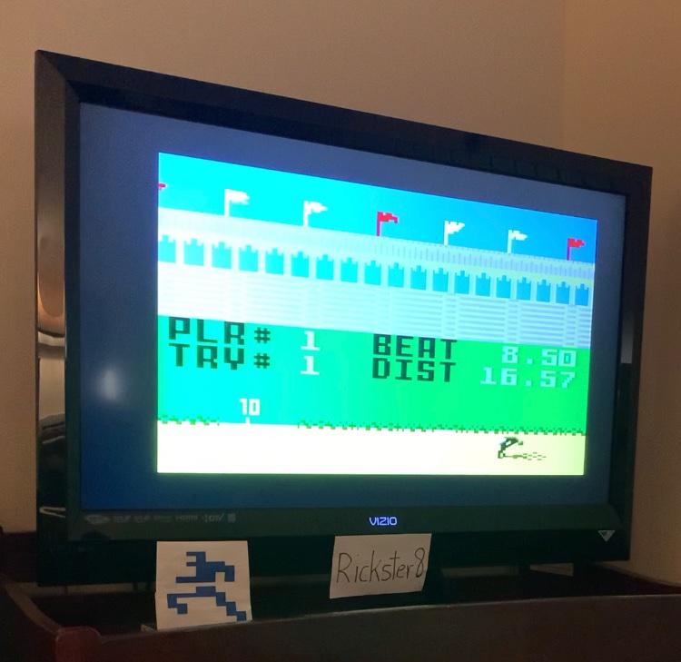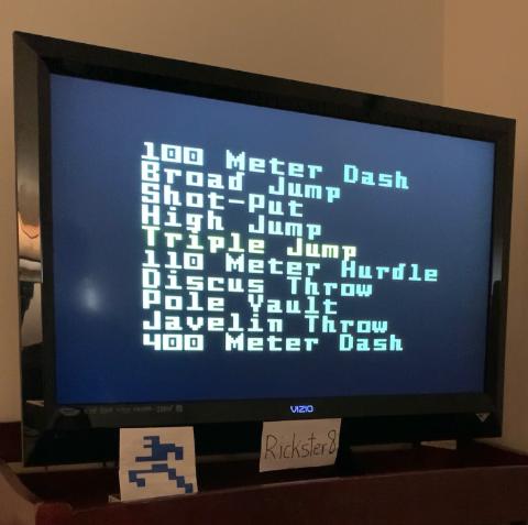 This is my submission for Super Pro Decathlon on the Intellivision, Triple Jump, My best final score / distance was 16.570 meters.. There are many attempts on this video, but for this submission the best scoring run begins at the 3:00 mark. Final score / distance of 16.570 meters is shown at the 3:15 mark. This game was played at the Amateur Level. Boot up occurs at the beginning of the video. Intellivision hardware shown at the end, power was on and the Super Pro Decathlon cartridge was shown in the port. Reset done and power switched off at the very end of the video. Thx