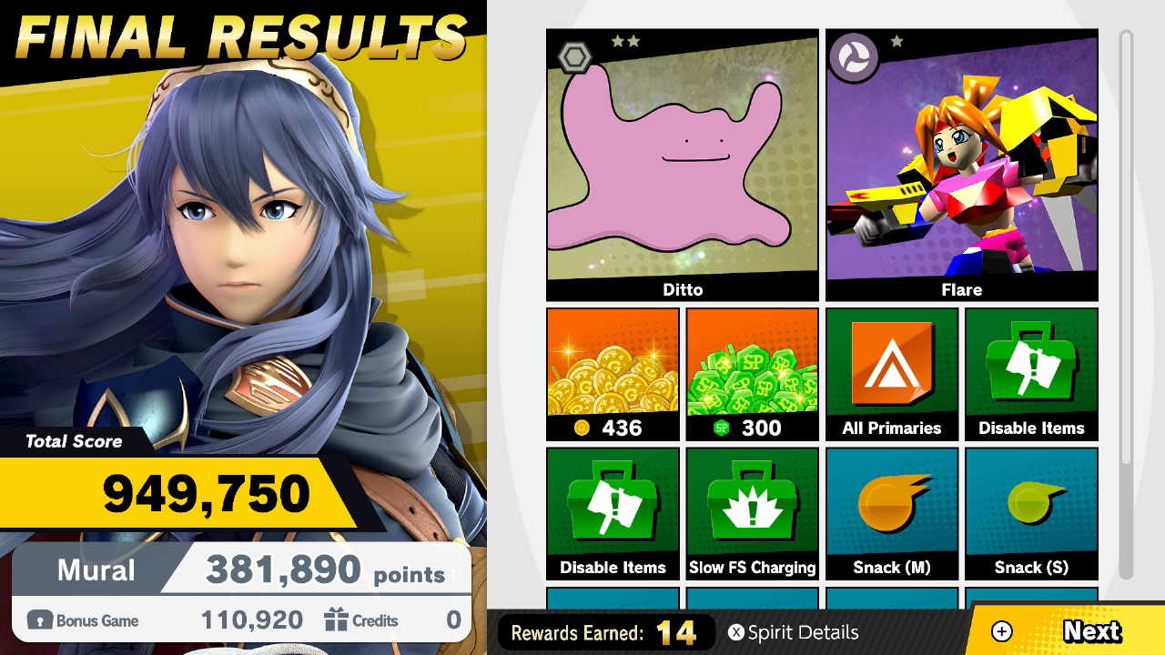 Hardware assumed, game checked, game mode checked, character used checked, gameplay checked, score checked.