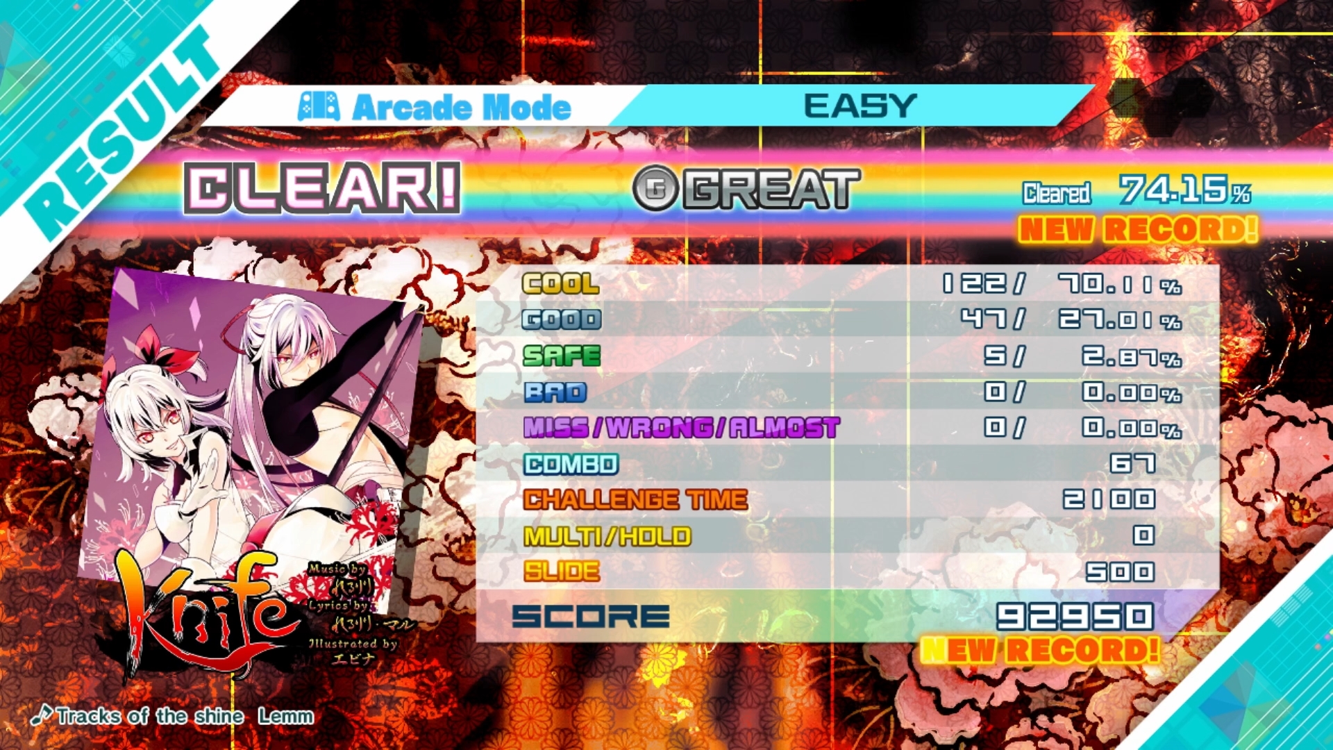 checked settings : Knife / Easy / Arcade Mode : ok