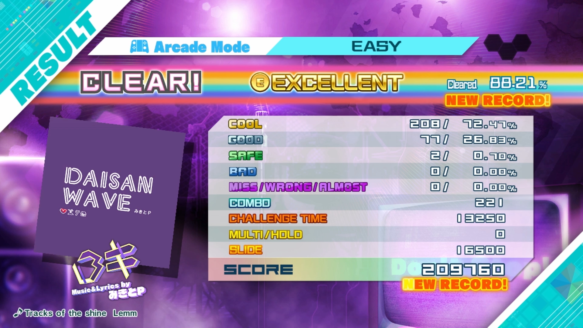 Hardware assumed from video start sequence, game checked, Arcade mode checked, Song and Easy skill checked, gameplay checked, score checked.