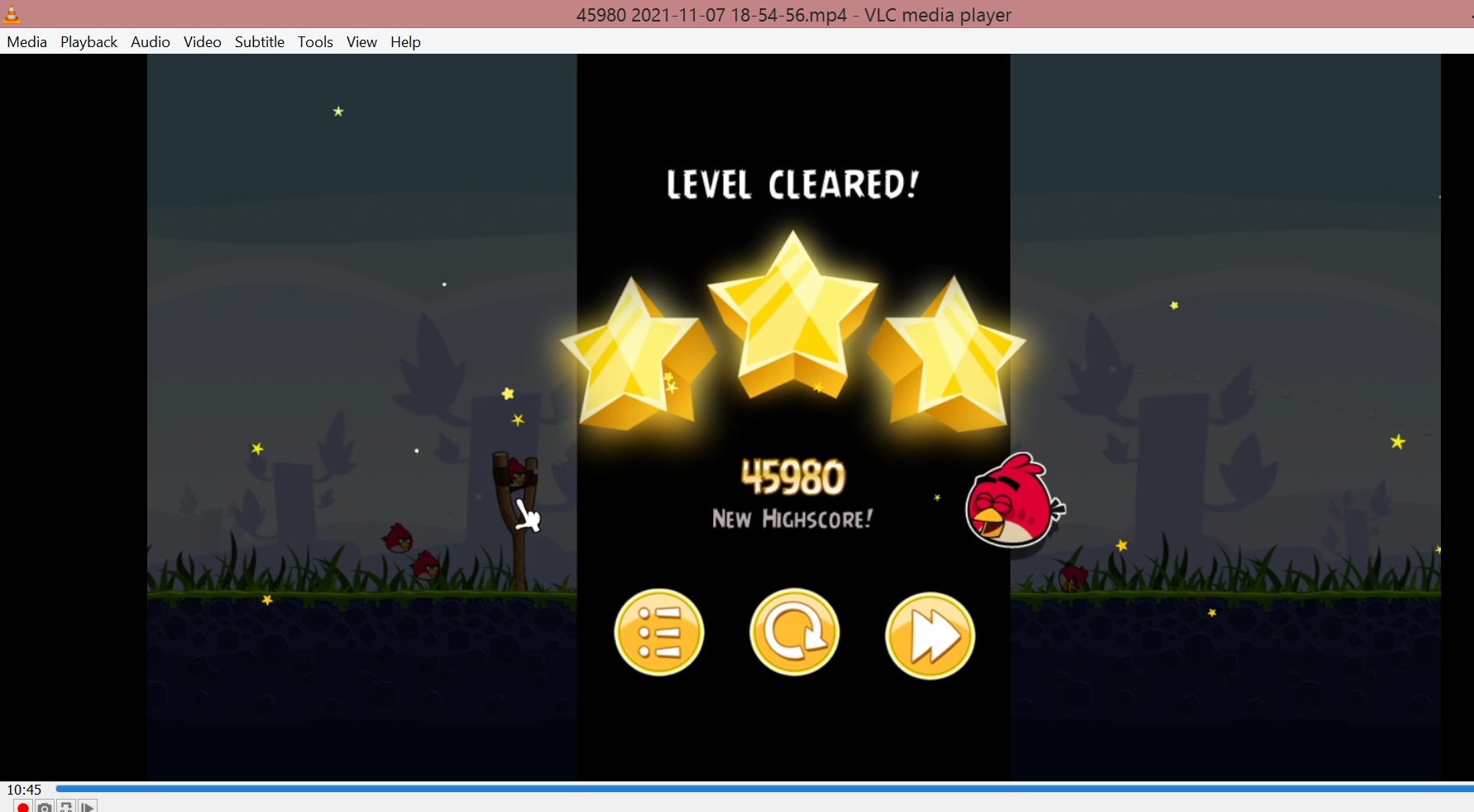 10:45 "Level cleared" message. The score is displayed.
