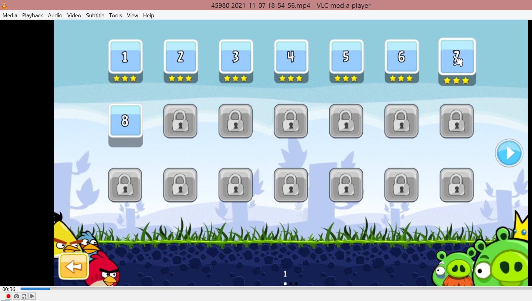 0:36 Level 1-7 selected.