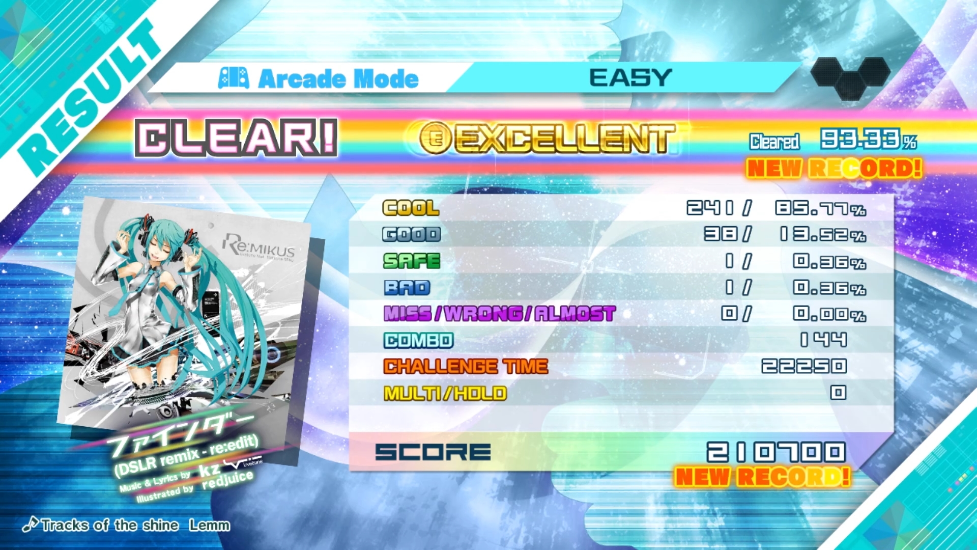 checked settings : Finder (DSLR remix-re:edit) | Easy / Arcade : ok