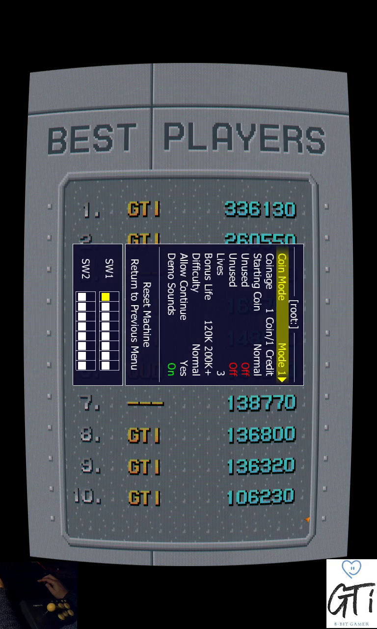 Play the game in 1 player mode with default settings: Lives: 3 Difficulty: Normal Bonus Life: 120K 200K+ |