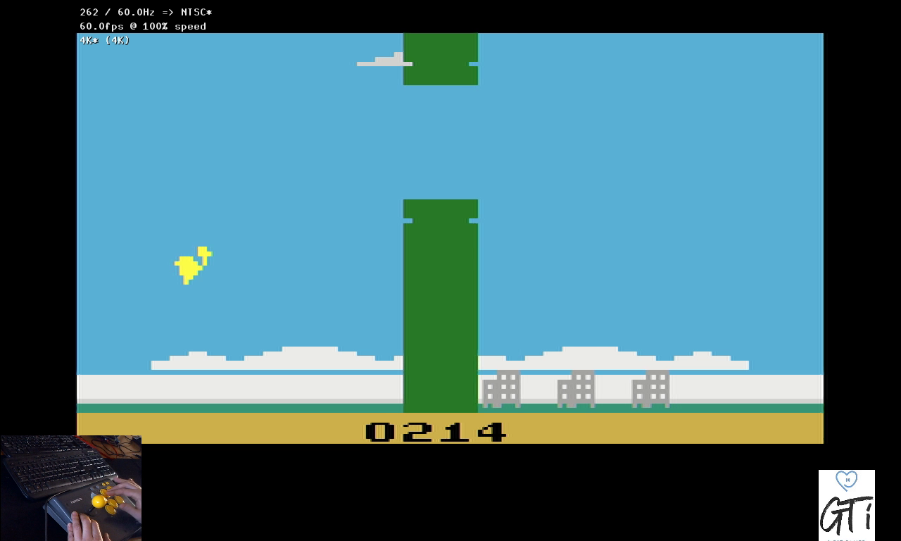 Only one game variation in this title. Game select switch has no effect. Difficulty switch settings have no effect in this title, and can therefore be in any position at any time. Homebrew Author: Mike Haas (a.k.a. "iesposta") Released: 2014 MD5: 2d33a44e82f88d05f6c50577218c0cae πROM was publicly released by its author, and can be obtained here: https://atariage.com/forums/topic/222161-flappy-my-1st-released-game/ 2.15.22 |