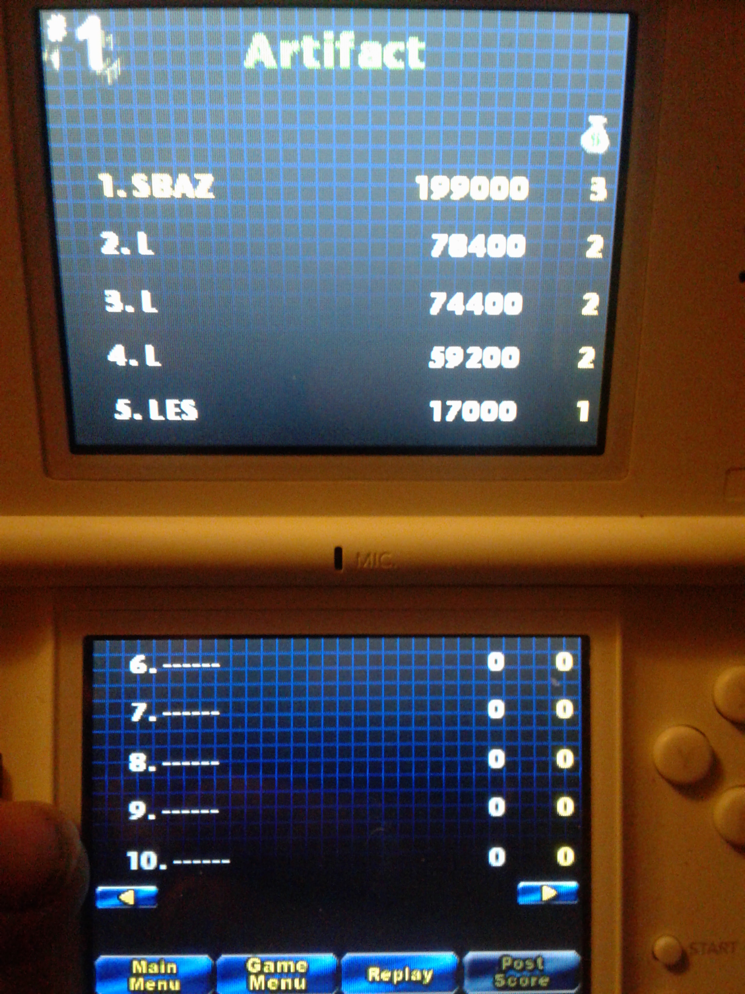 Game must be played on the actual hardware (Nintendo DS, DSi) or backwards compatible hardware (Nintendo 2DS, 3DS (XL)). Play with default settings unless otherwise specified. No code modifications that give the player an advantage over other players. 1 credit. No continues. 1 player mode only. No use of trainers, cheats, auto-fire (when not default present in-game) , game saves, or cheat codes. Can be overruled by the Specific Rules (see below). It is discouraged and may lead to voters not accepting your score to - excessively point farm - use glitches or other game exploits |