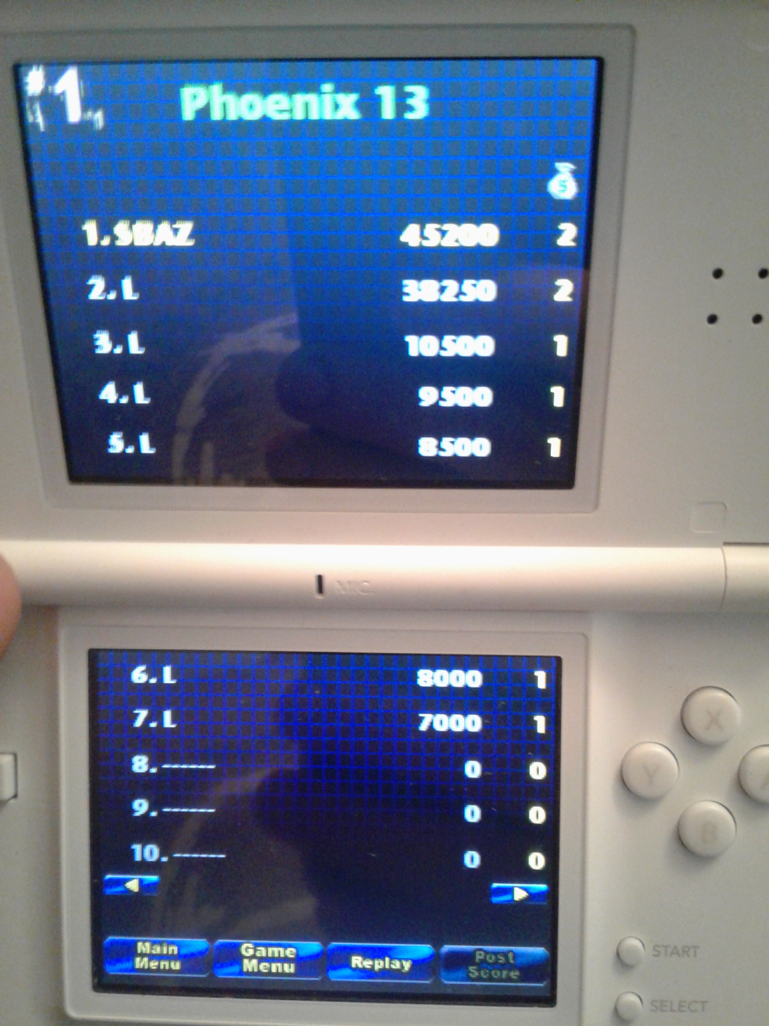 Game must be played on the actual hardware (Nintendo DS, DSi) or backwards compatible hardware (Nintendo 2DS, 3DS (XL)). Play with default settings unless otherwise specified. No code modifications that give the player an advantage over other players. 1 credit. No continues. 1 player mode only. No use of trainers, cheats, auto-fire (when not default present in-game) , game saves, or cheat codes. Can be overruled by the Specific Rules (see below). It is discouraged and may lead to voters not accepting your score to - excessively point farm - use glitches or other game exploits |