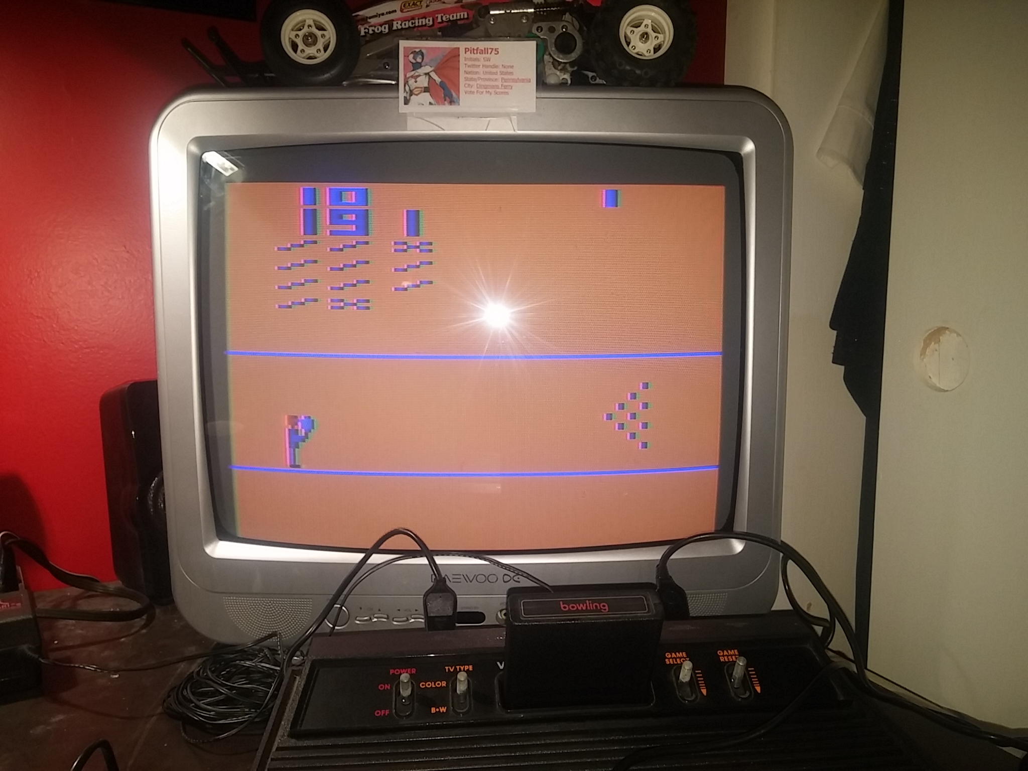 Game 1: The player can curve the ball either up or down after it is thrown. Ball remains travelling in the direction selected until the roll has been completed. Left difficulty switch setting must remain in the position indicated by the leaderboard category: A/Expert: Hard to strike B/Novice: Normal strike capability Right difficulty switch setting has no effect in a one-player variation, and can therefore be in any position at any time. ⚠For Diff A submissions, the evidence must show proof that the player's difficulty switch was in the A/Expert position throughout gameplay. 🥇 Maxout: 300 A 4.10.22 |