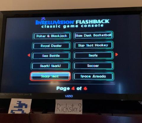 This is my submission for Sharp Shot - Maze Shoot on my Intellivision Flashback. My high score was 55 points. I booted up the system in the beginning of the video. There are many attempts and resets on this video, but for this submission my high scoring run of Maze Shoot begins at the 17:34 mark. Final score of 55 points is shown on screen at the 18:35 mark. After the game was over I showed my Intellivision Flashback, the power was on. At the very end of the video I reset my system and the menu screen showed Sharp Shot as the current game. I then flicked the power off. Thanks for watching and voting.