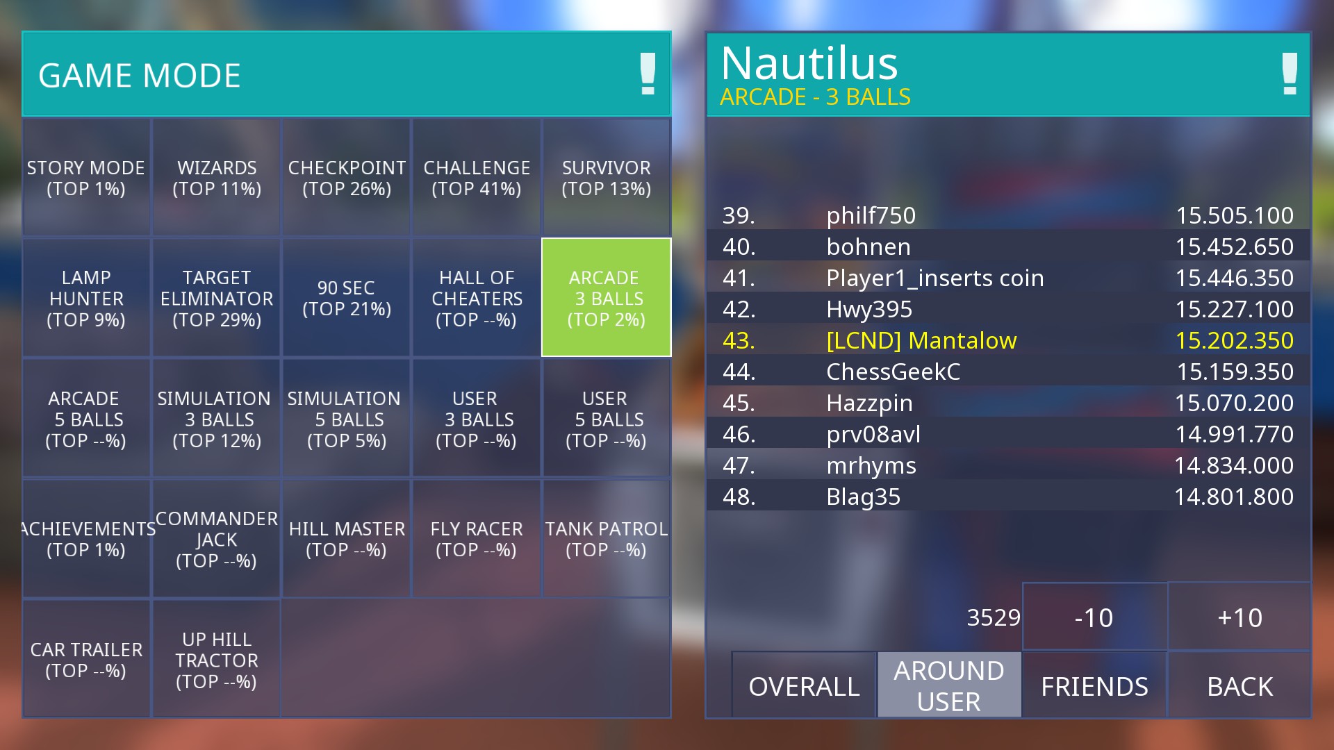 Game Mode / Ball Count / Table / Score all checked in Zaccaria Pinball.