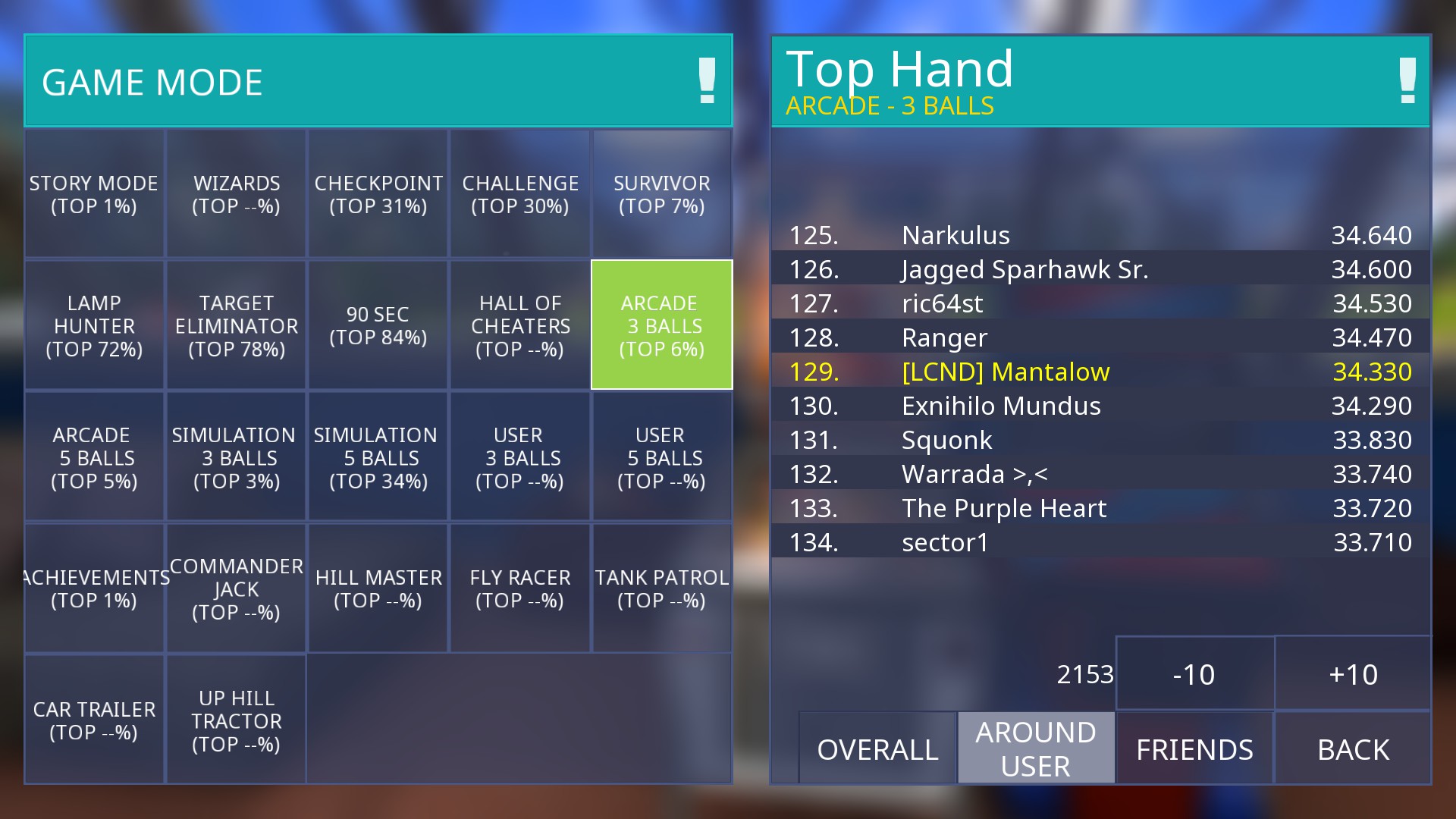 Game Mode / Ball Count / Table / Score all checked in Zaccaria Pinball.