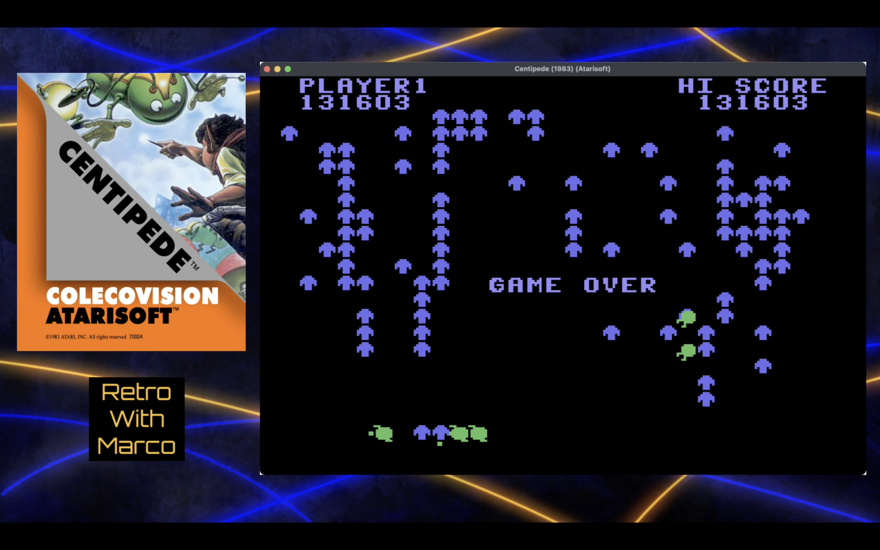I'm accustomed to maneuvering under the centipede near the bottom of the screen, but this version has a shooter which is too large for such evasion. It's also why I kept running right into the spider.