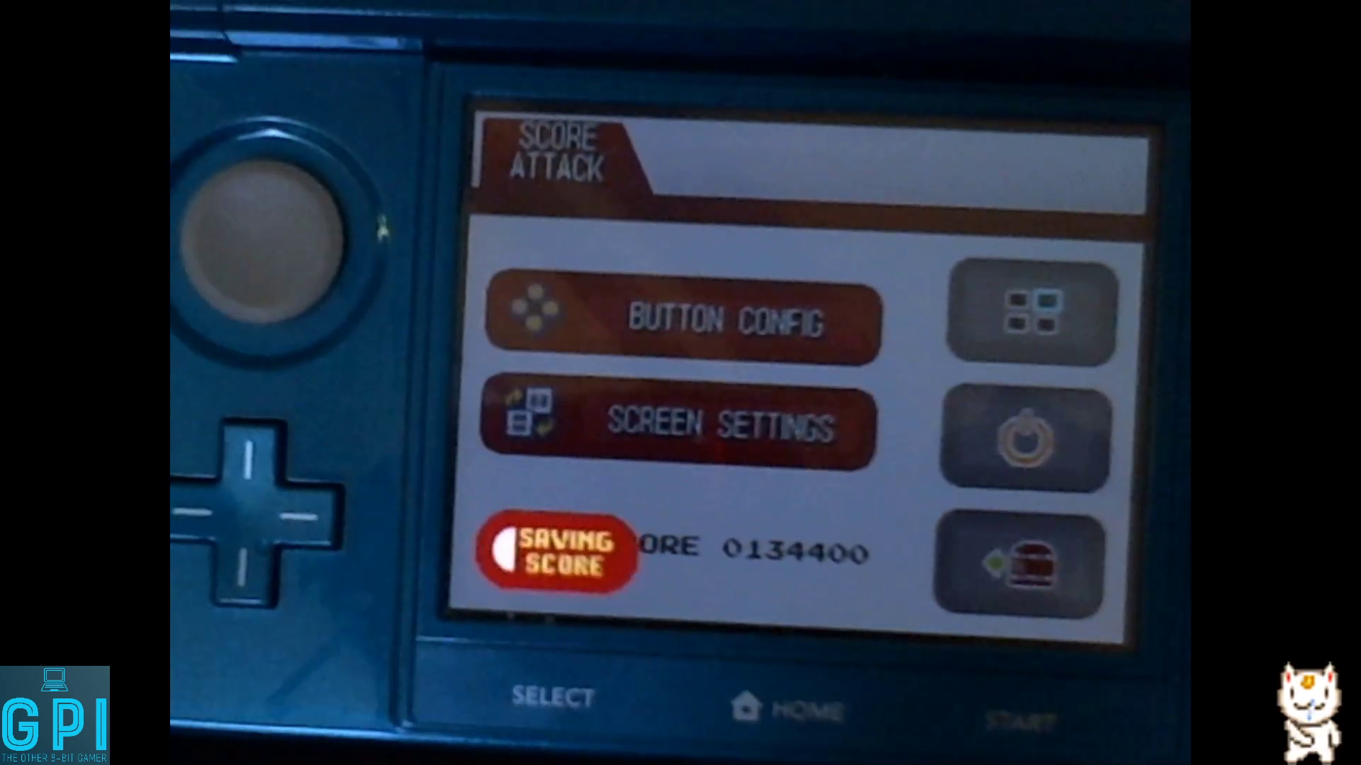 Play the game in 1 player mode with default settings. On 'Score Attack' there are NO settings to show. |