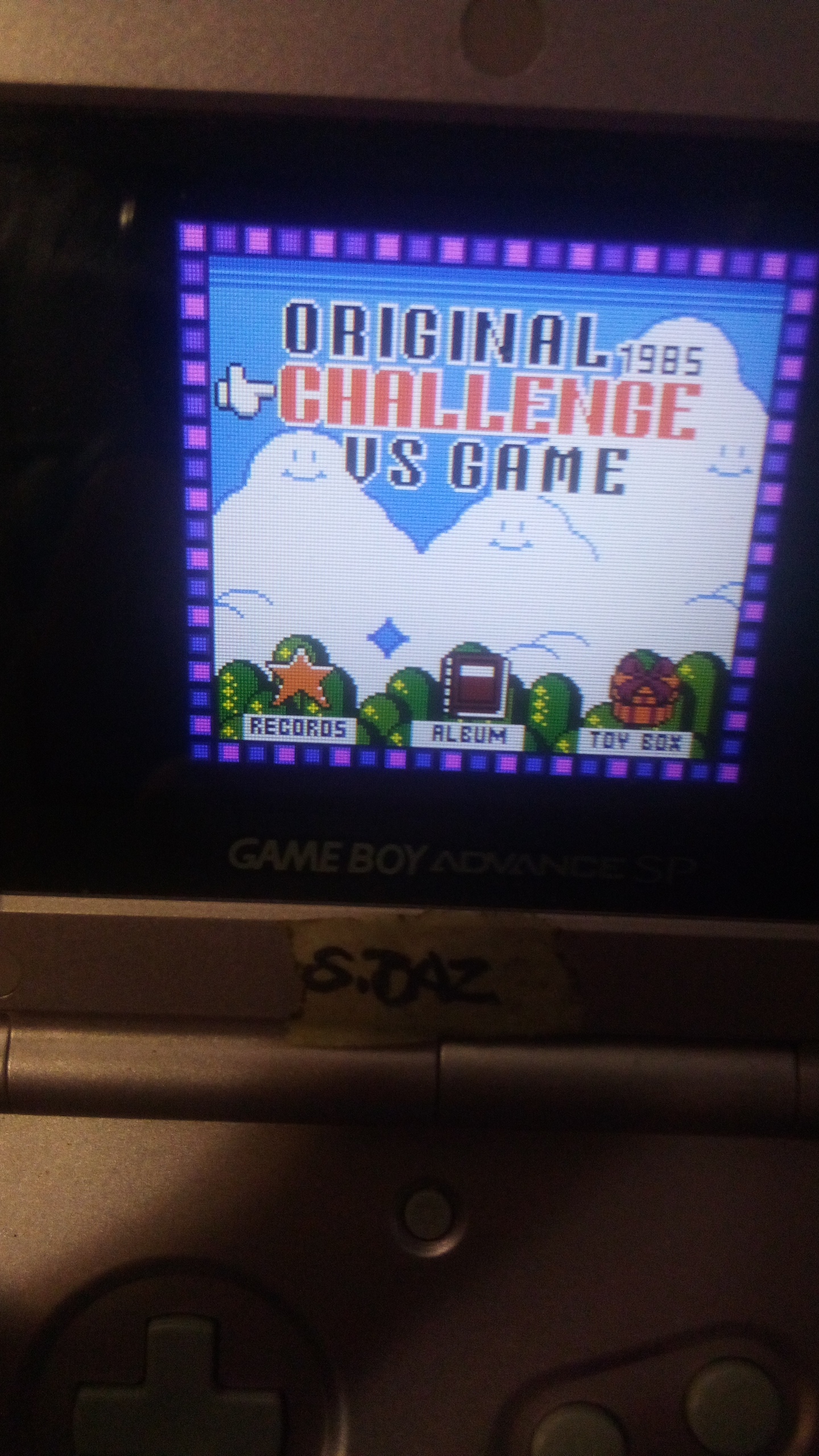 Play the game in 1 player mode with specific settings : Choose "Challenge" menu and start from 1-1. You need to finish at least one level on the "Original" version for unlock the Challenge menu. |