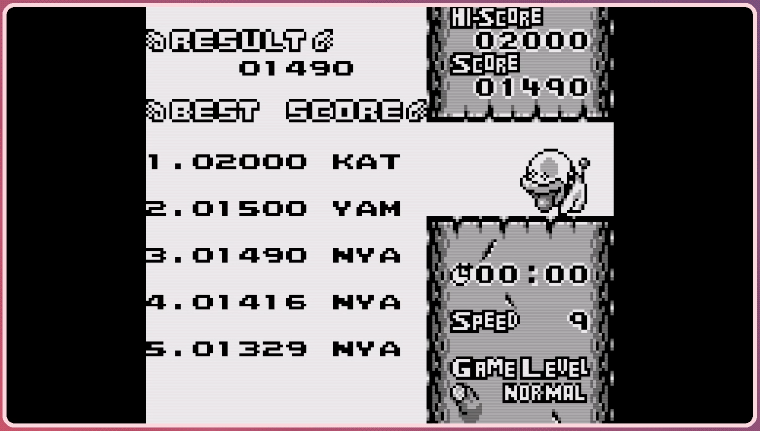 Play the game in 1 player mode with default settings: - Time Trial Mode - Speed Level = Default = 1 - Character choice is free. |
