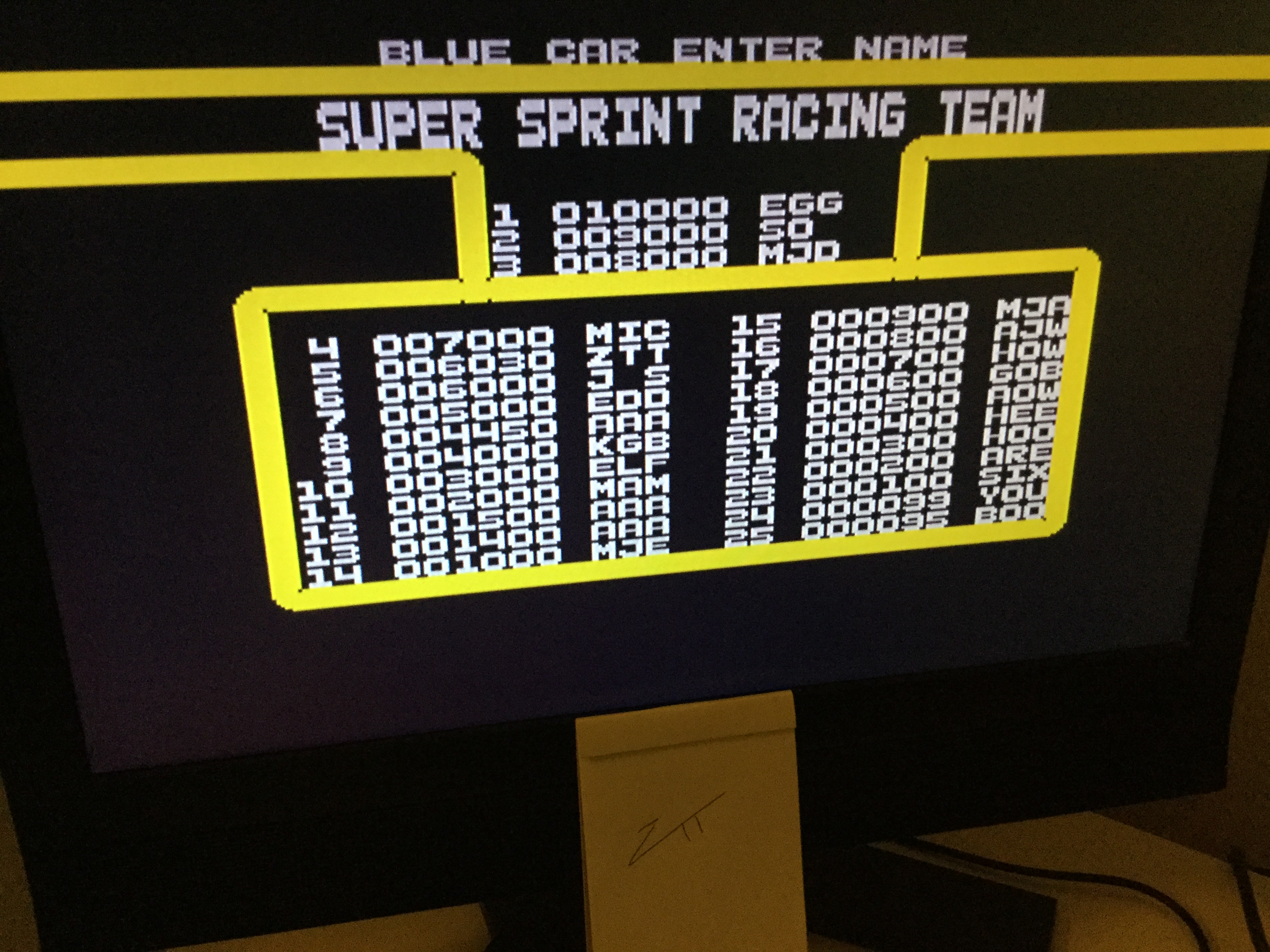 Hardware checked, game checked, gameplay checked, score checked, initials checked.