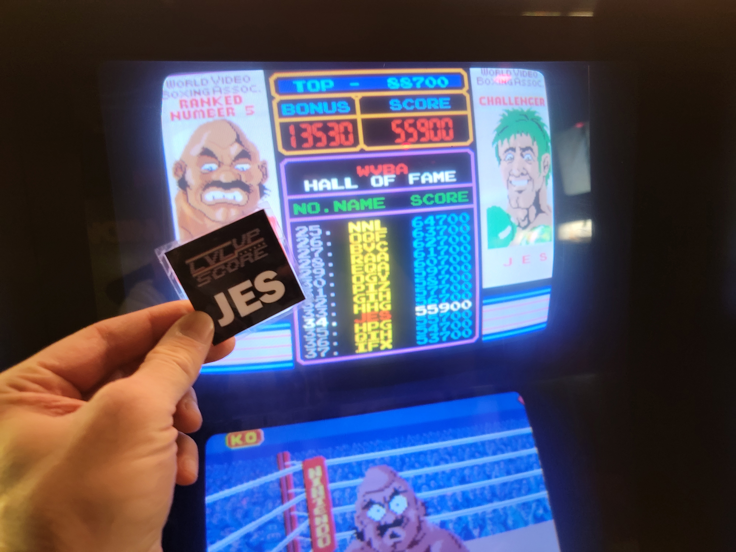 Hardware checked, game checked, score checked, initials checked.