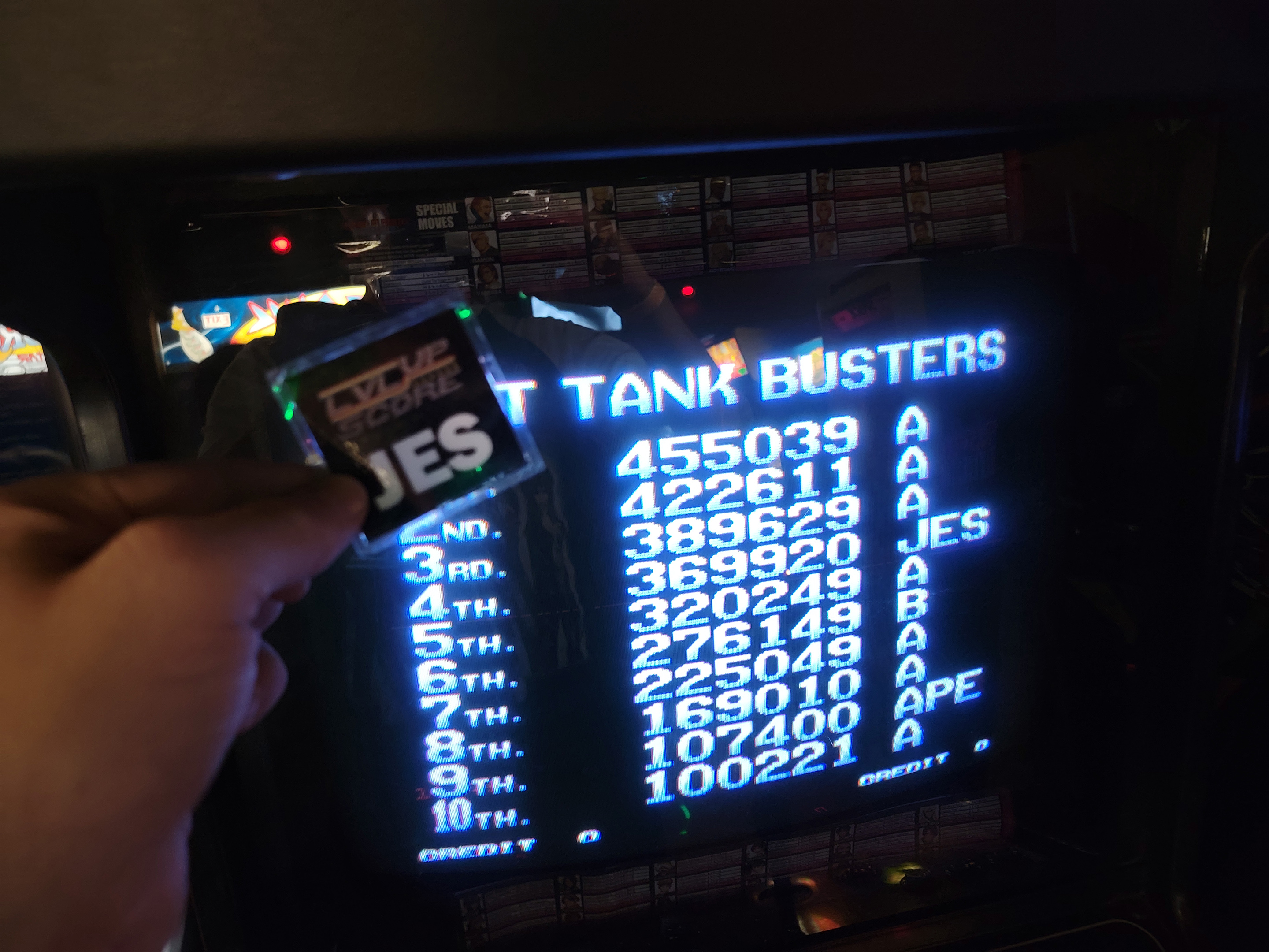 Hardware checked, game checked (online check of what high score table looks like), score checked, player initials checked.
