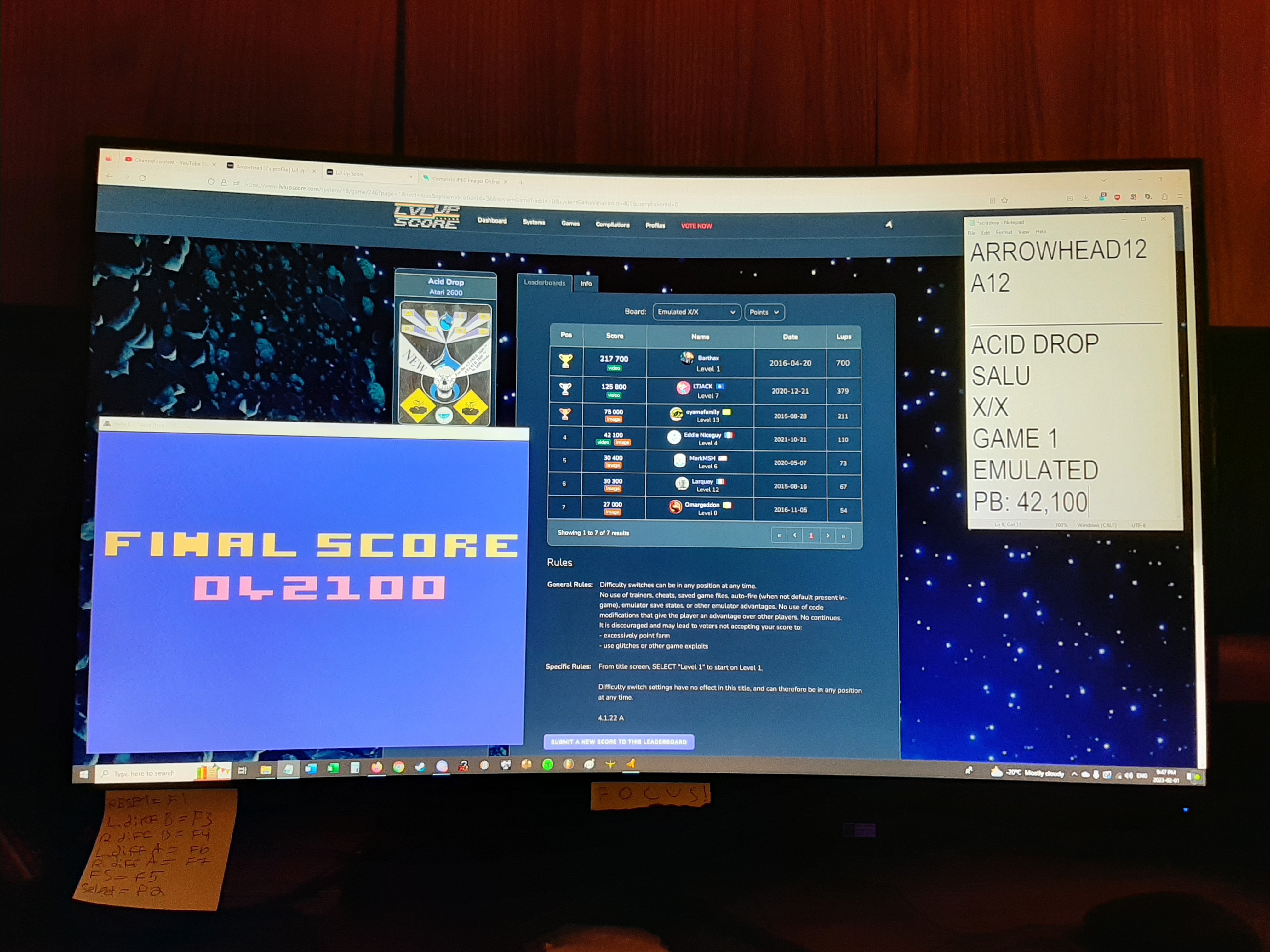 Difficulty switches can be in any position at any time. No use of trainers, cheats, saved game files, auto-fire (when not default present in-game), emulator save states, or other emulator advantages. No use of code modifications that give the player an advantage over other players. No continues. It is discouraged and may lead to voters not accepting your score to: - excessively point farm - use glitches or other game exploits |