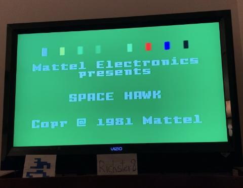 Hardware, Power On, Space Hawk Cartridge and Controller all shown after the game was played