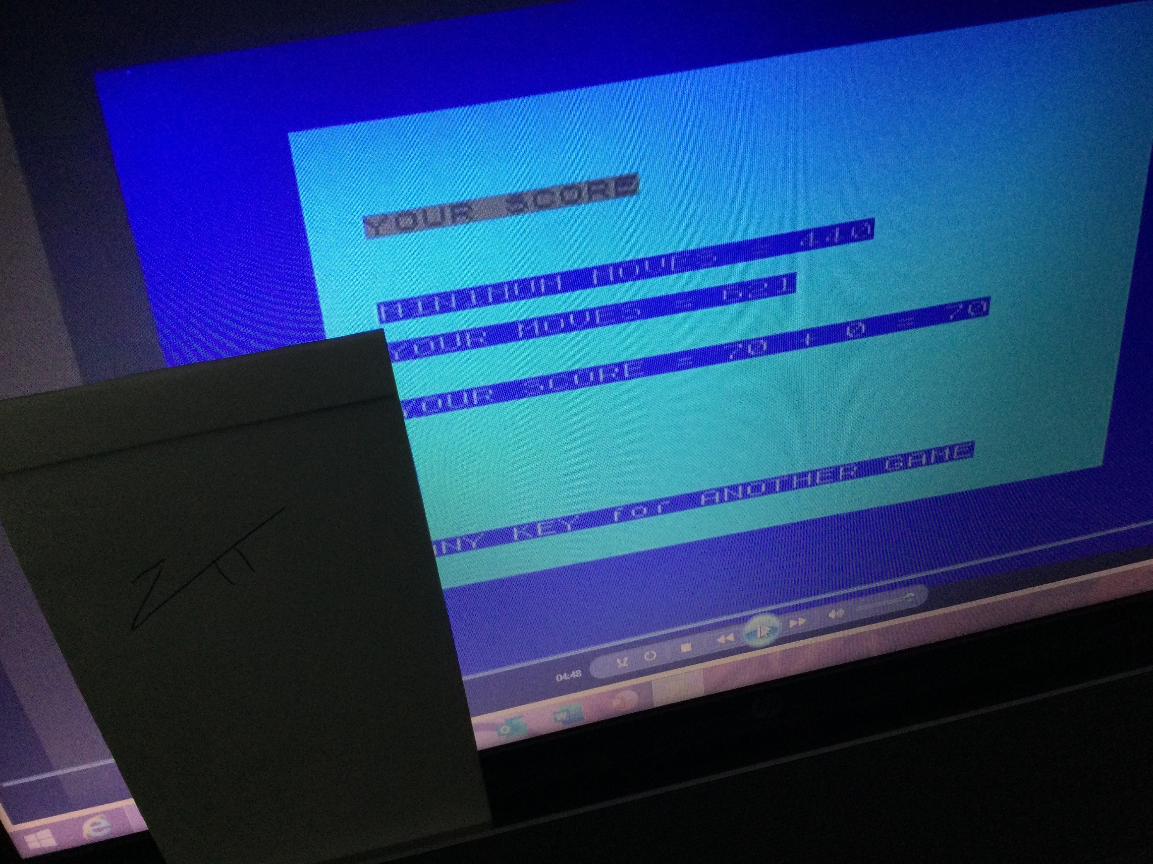 Hardware checked, game checked, Adventure 1 selected, gameplay checked, score checked.