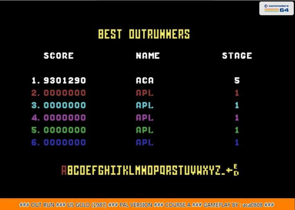 Must be played on the European version (released by US Gold). This version is identified by not having a course selection screen. Courses are normally loaded by selecting them from the tape or disk manually, unless a cracktro works around this limitation. This version also has no yellow color in the player's car / passengers sprites (unlike the US version). European version normally also doesn't offer a map overview with distance driven at game over, while the US version does. (although beware that the Lurid & Tricycle hack ported this feature from the US release over to the European release) Be careful of the following: It can happen during game play that the game skips Stage 4 or awards you a double bonus when finalizing the Stage 5 (end of game bonus). All these runs, no matter if done on purpose or by accident, will be disqualified (even after they have been accepted by voters). It can also happen that you don't get enough bonus at the end of Stage 5. You are allowed to add the correct amount of bonus to your final score when this happens (see i.e. Stevengton score EMU PAL Course A). SO VIDEO GAMEPLAY IS MANDATORY. Do not play this on the Lurid & Tricycle hack, because this hack has some oddities that other versions do not suffer from. This version can be identified by having 8 digits in the score (both in game and on the game over leaderboard). This should be 7 digits always. |