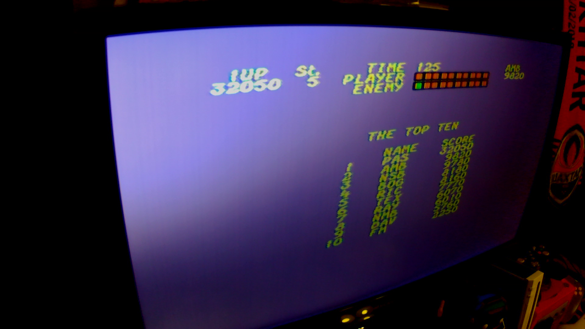 Game checked, Stage 1 start checked, gameplay checked, score checked, initials checked, hardware checked.