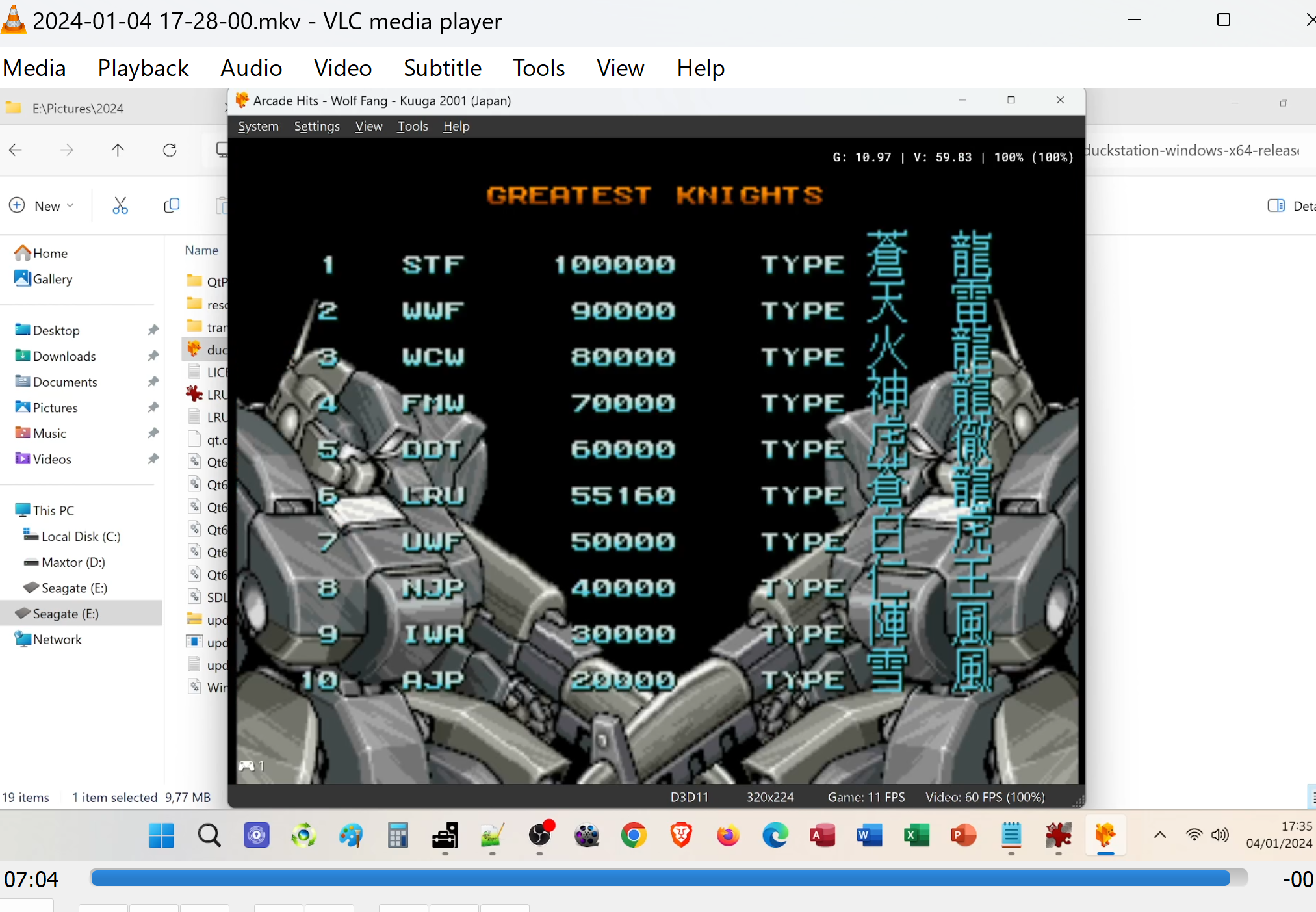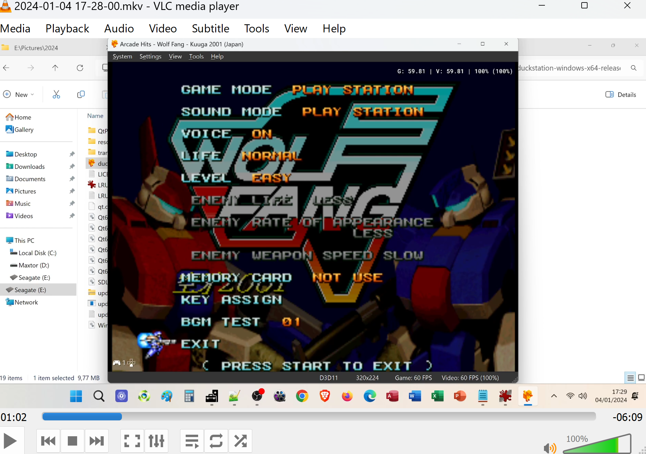 "Wolf Fang: Kuuga 2001" has two selectable game modes ("Play Station" and "Arcade") and four selectable skill levels ("Easy", "Normal", "Hard", and "Very Hard").