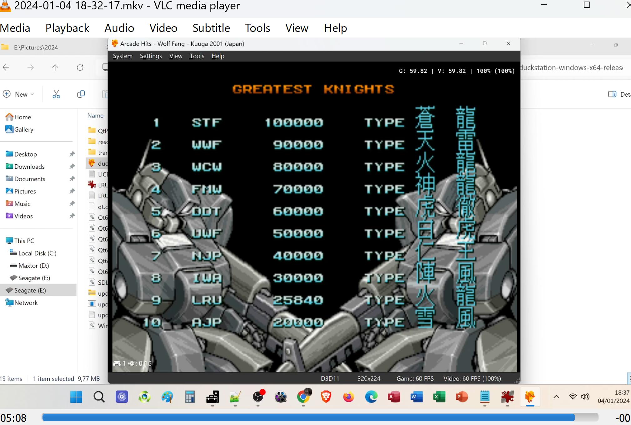 Emulation checked, game checked, Level = Very Hard, gameplay checked, score checked, initials checked.