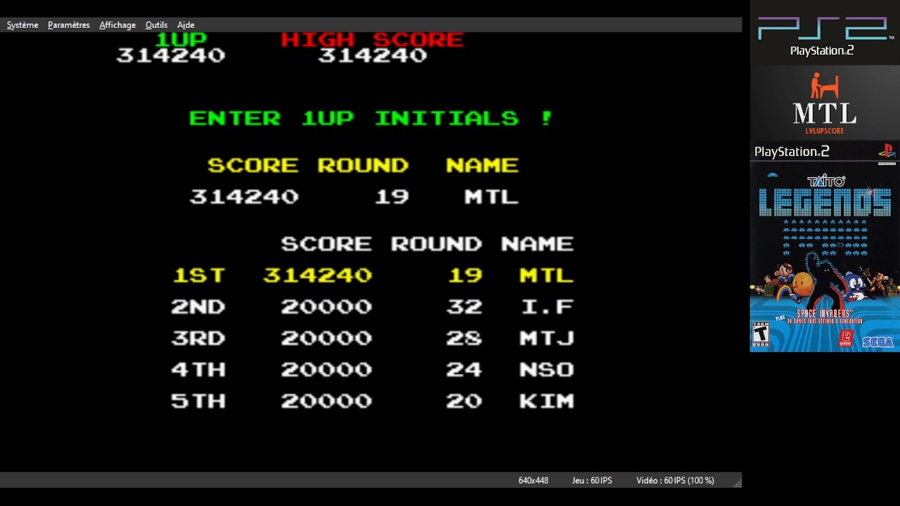 Emulation checked, game checked, Skill Level = Medium, gameplay checked, score checked, initials checked.