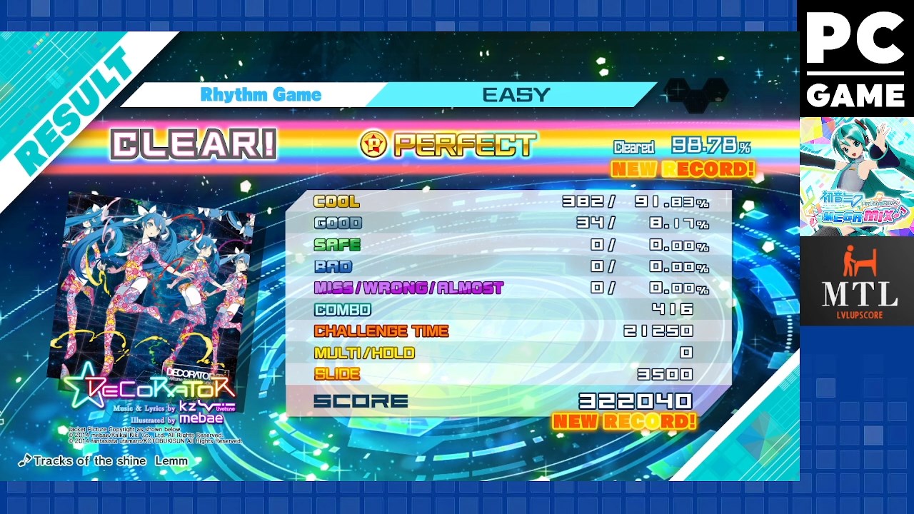 Game checked, Song / Easy / Gameplay checked, score checked.