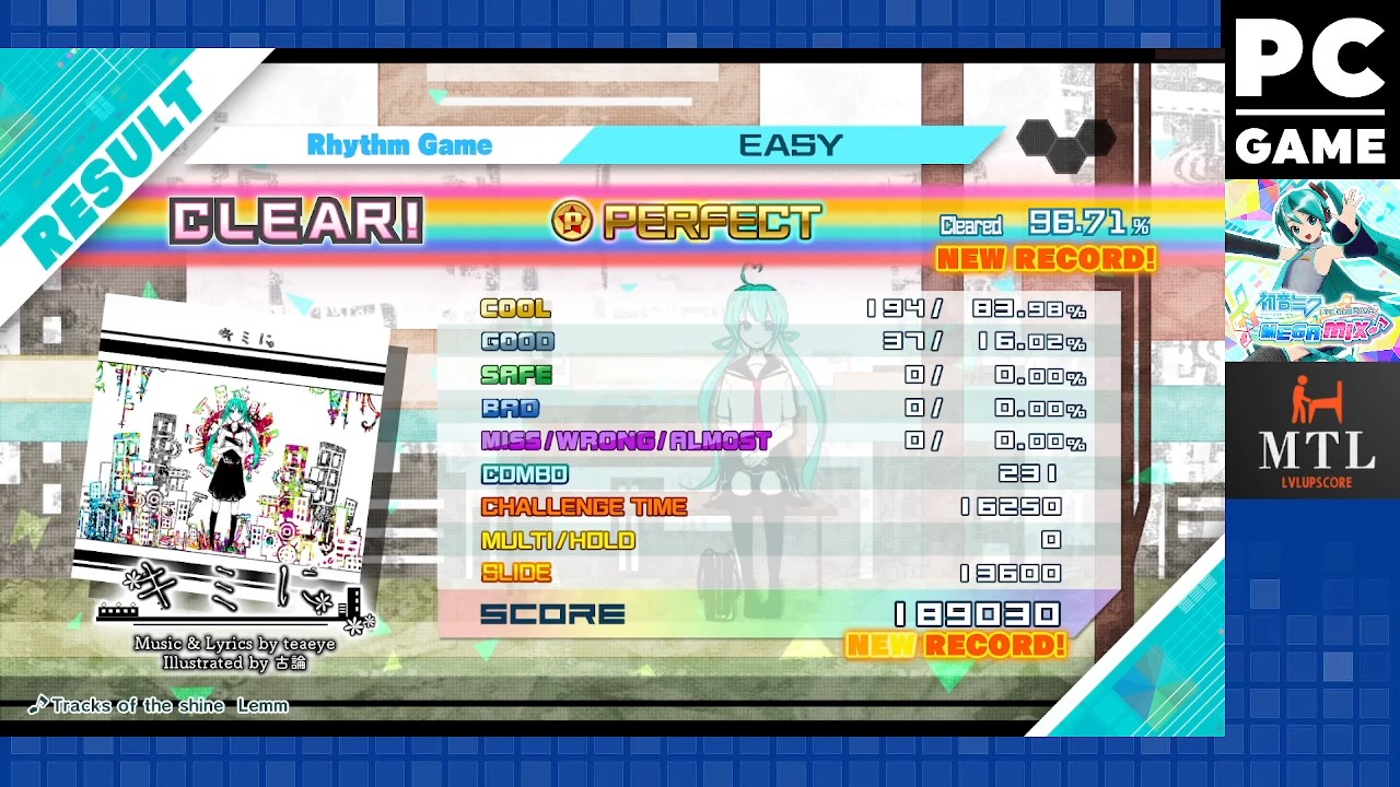 Game checked, Track / Easy checked, gameplay checked, score checked.