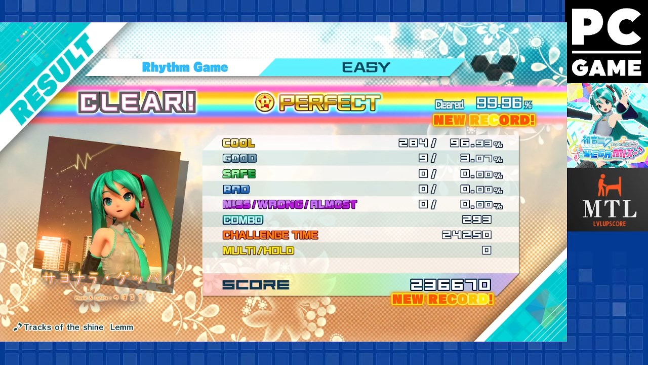 Game checked, Rhythm Game checked, Track / Easy checked, gameplay checked, score checked.