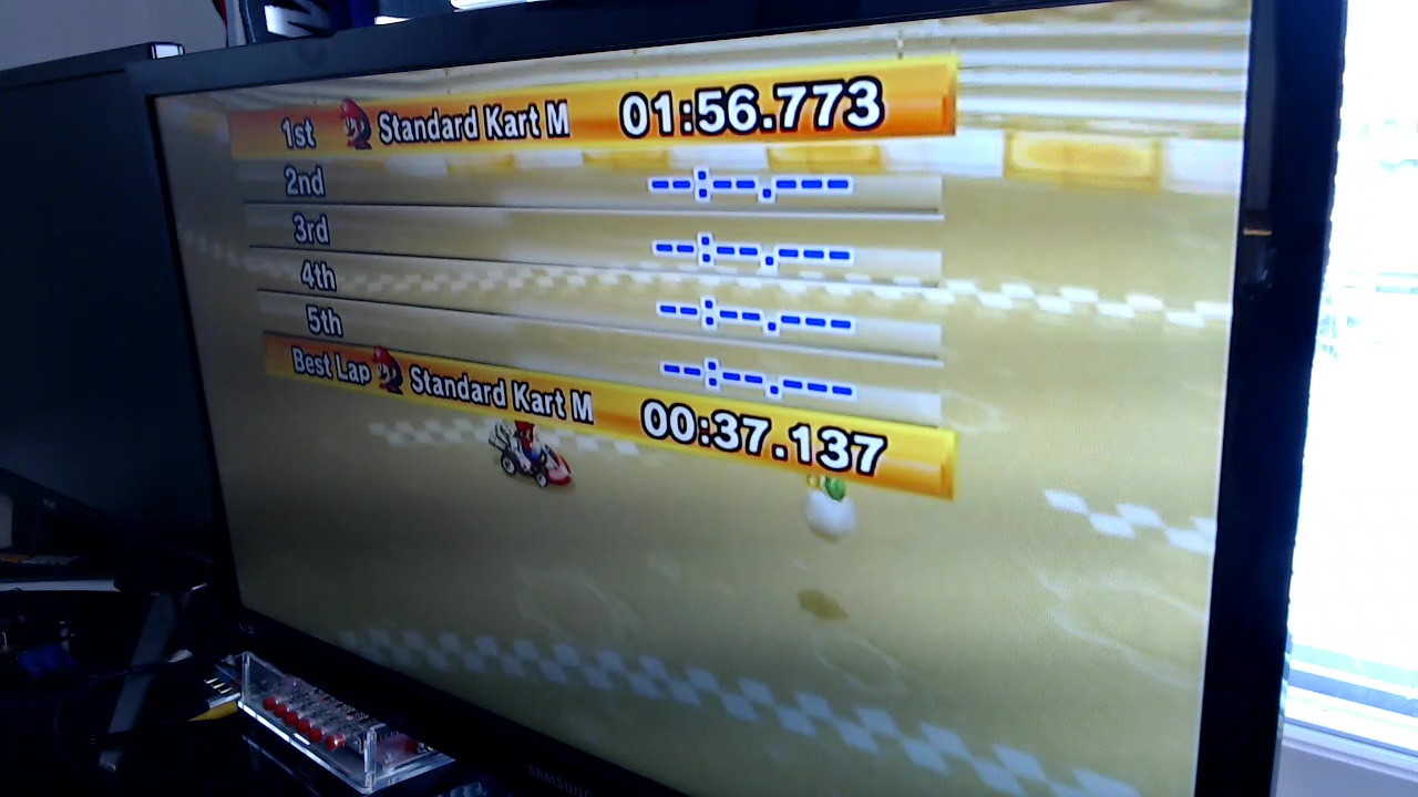 Play single player, in time trial mode. Note that ultra shortcuts (shortcuts that skip a large amount of the course through manipulating the checkpoint system) are not allowed for this category. |