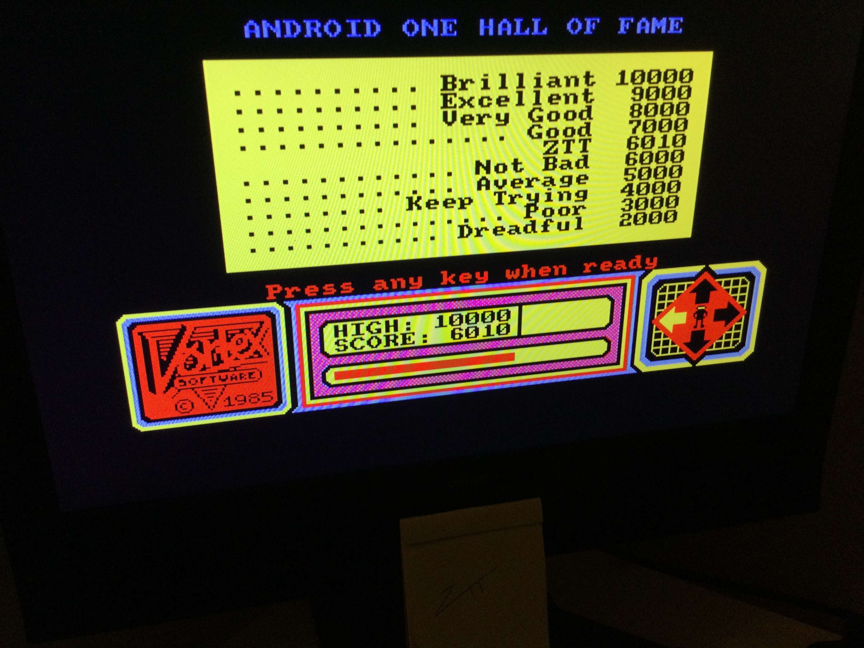Game checked, gameplay checked, score checked, initials checked, hardware checked (photo only).