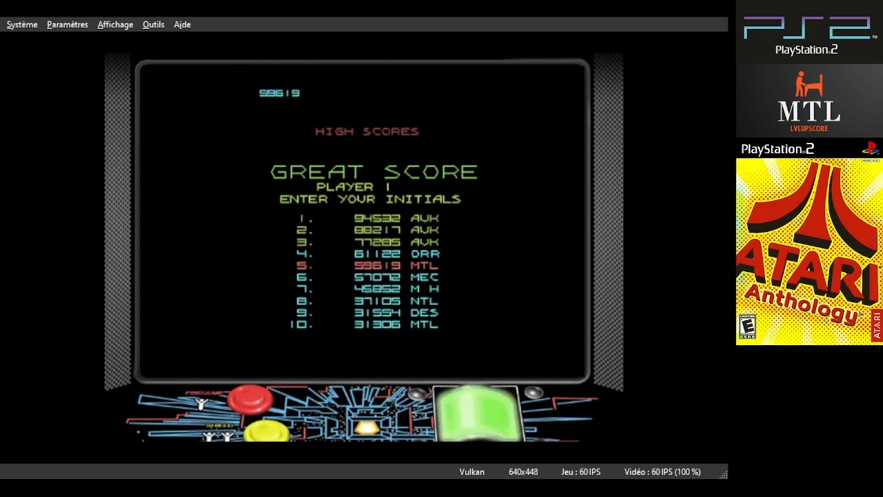 Emulation checked, game checked, Difficulty = Medium checked, gameplay checked, score checked, initials checked.
