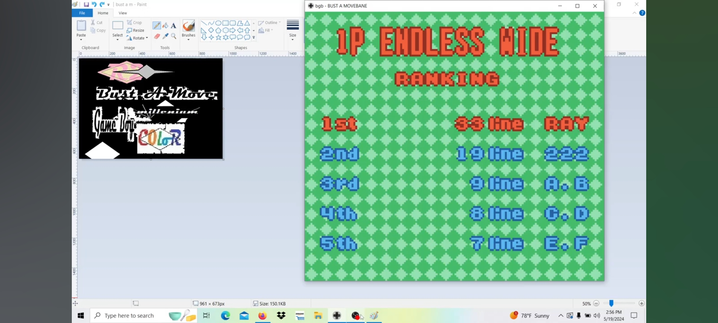 Emulation checked, game checked, Easy / Endless / Wide checked, gameplay checked, score checked, initials checked.