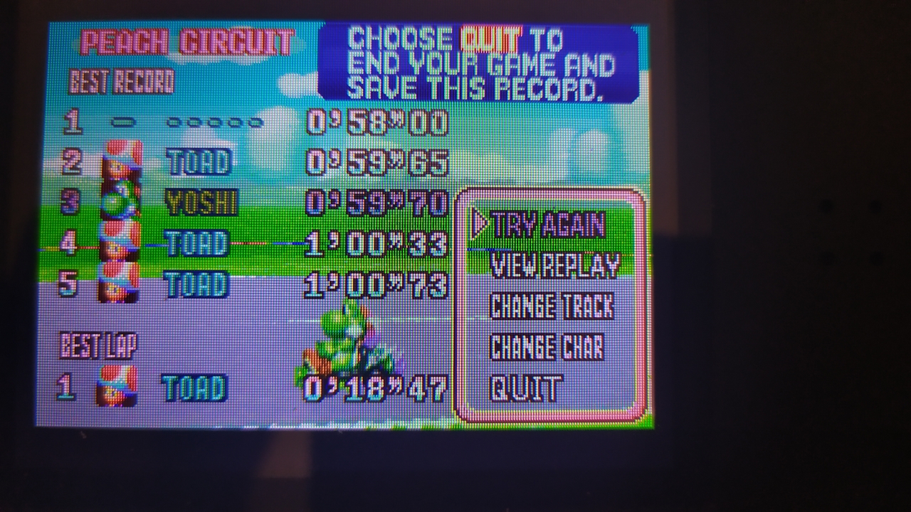 Play the game in 1 player mode with default settings The total laps can be different, it depend of the track : 3 laps for Super Circuit tracks, and 5 laps for tracks from the SNES tracks. |