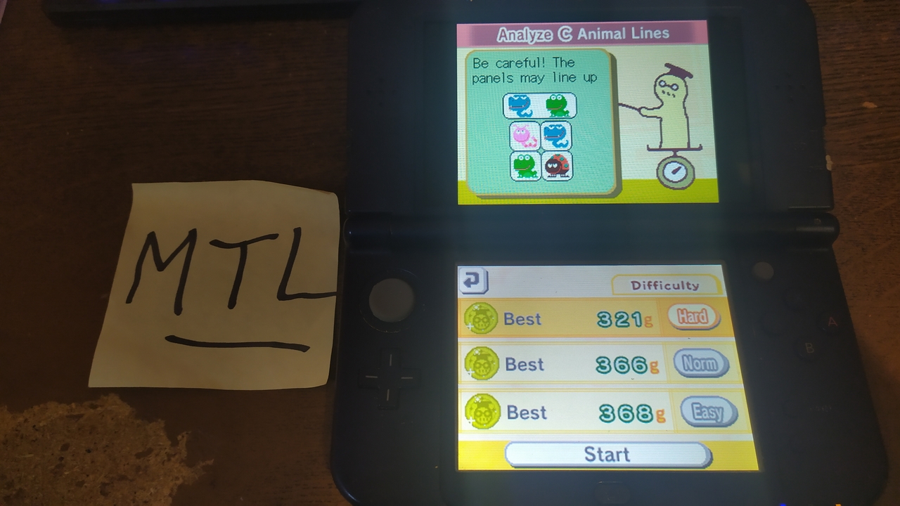 Game must be played on the actual hardware (Nintendo DS, DSi) or backwards compatible hardware (Nintendo 2DS, 3DS (XL)). Play with default settings unless otherwise specified. No code modifications that give the player an advantage over other players. 1 credit. No continues. 1 player mode only. No use of trainers, cheats, auto-fire (when not default present in-game) , game saves, or cheat codes. Can be overruled by the Specific Rules (see below). It is discouraged and may lead to voters not accepting your score to - excessively point farm - use glitches or other game exploits |