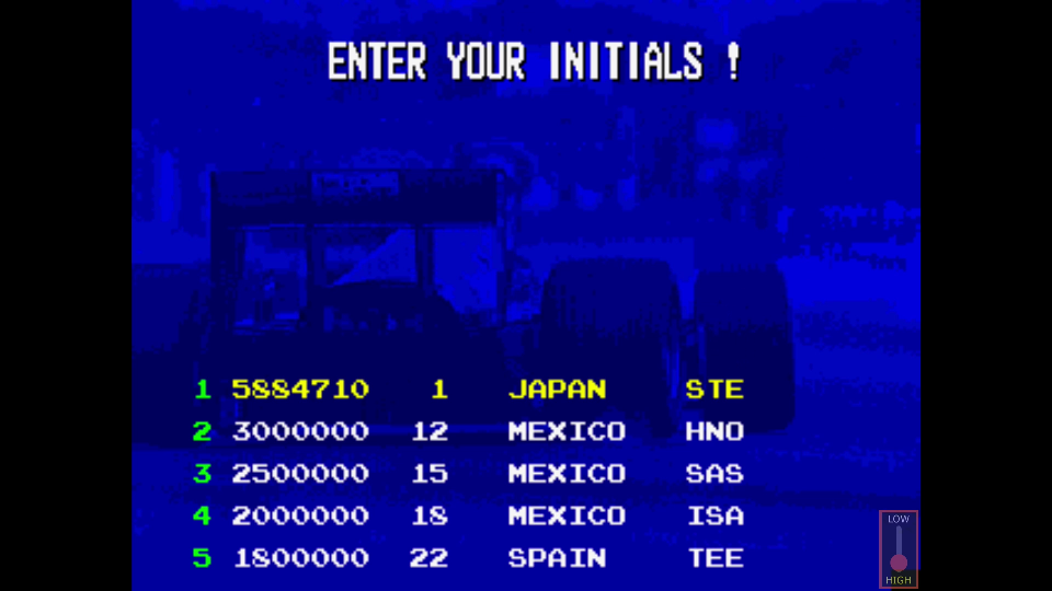 Note: hi-score is 50 points bigger than what was shown after the finish of the last race.