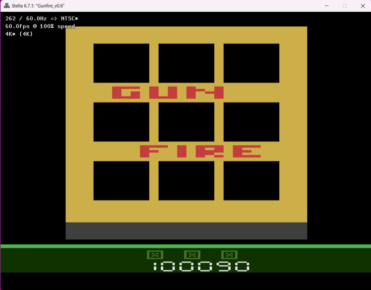 ⚙️ Only one game variation in this title. GAME SELECT switch has no effect. ⏪ Left difficulty switch setting has no effect in this title, and can therefore be in any position at any time. ⏩ Right difficulty switch setting has no effect in this title, and can therefore be in any position at any time. 🔄 Rollover: 1,000,000 ⚠️Pre-release. Must use ROM version v0.6. ✒️ Atarius Maximus ©️ Self-published 🗓 2024 🕹ROM was publicly released by its author, and can be obtained here: https://forums.atariage.com/topic/375644-a-new-minikernel-and-a-new-game/ 💾 https://forums.atariage.com/applications/core/interface/file/attachment.php?id=1169885&key=00988f10412c0027150d7a6b45f8c8e4 F 12.4.24 |