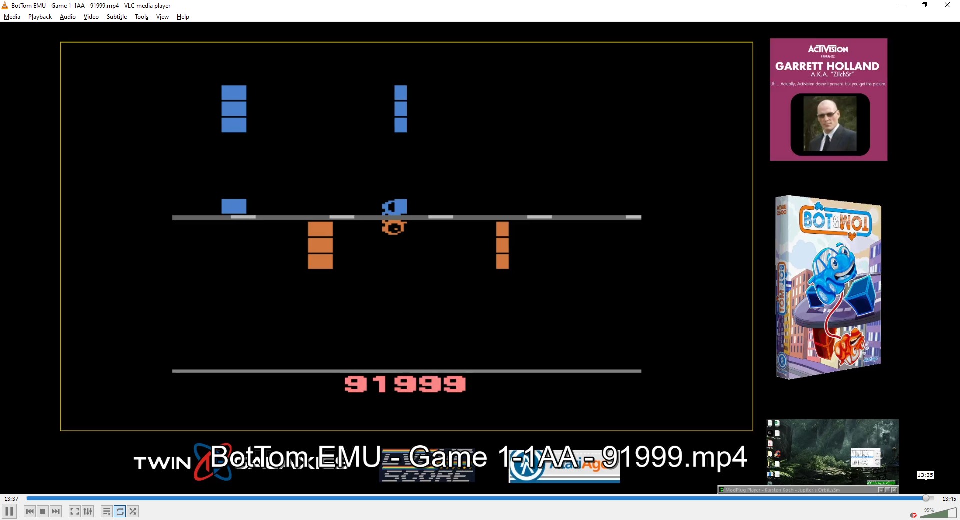 ⚙️ Game 1-1 ∙ Start on level 1 ∙ Track Set 1 ⏪ Left difficulty switch setting must remain in the position indicated by the leaderboard category: 🅰 Power-ups available. No energy given at the end of a level 🅱 No power-ups. Extra energy awarded at the end of a level ⏪ Right difficulty switch setting must remain in the position indicated by the leaderboard category: 🅰 Shield enabled. Shield uses energy. Hitting obstacles without shield loses 2X energy. 🅱 No shield. 🏆 Maxout: 999,999 ✒️ Thomas Jentzsch ©️ Self-published 🗓 2023 🕹 ROM was publicly released by its author, and can be obtained here: 💾 https://forums.atariage.com/blogs/entry/17333-my-roms-for-download/#findComment-32098 💲 Buy the cartridge here: https://store.atariage.com/products/bot-tom-atari-2600-pre-order F 1.12.25 |