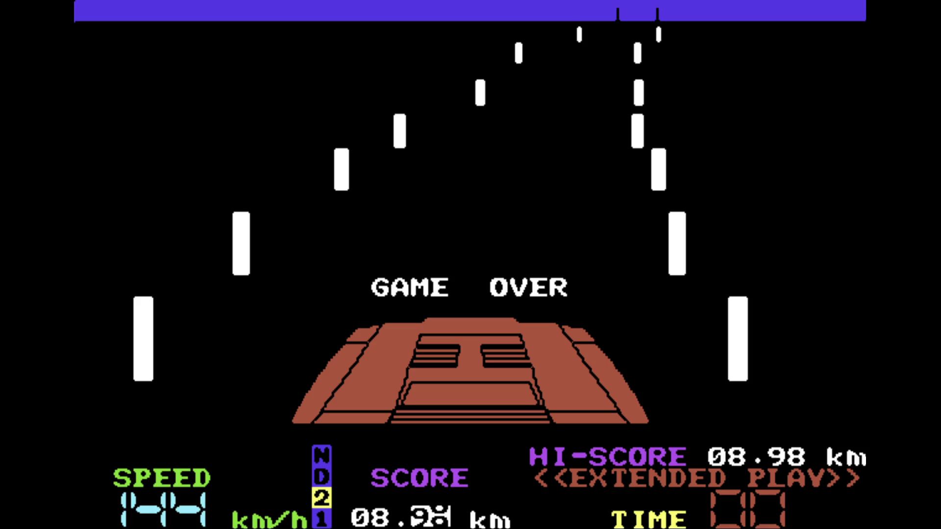 The game isn't really much fun (and very different compared to Atari 2600), though I just had to reach the 6 kilometers to see how much extra time I would get.