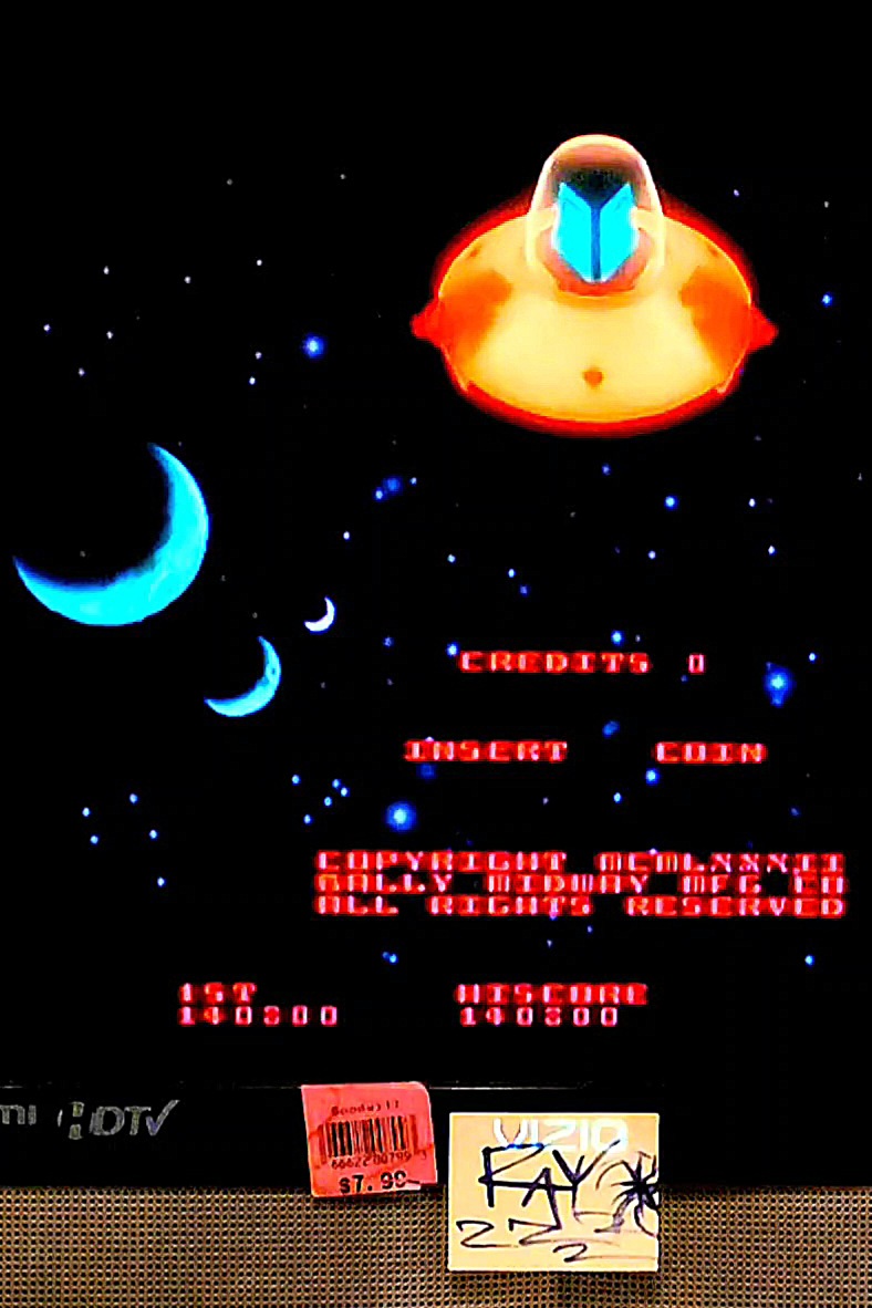 The 3D saucer is produced by the XBOX, as the original game features an actual physical "toy" flying saucer within the cabinet and shown on the screen with a mirror.